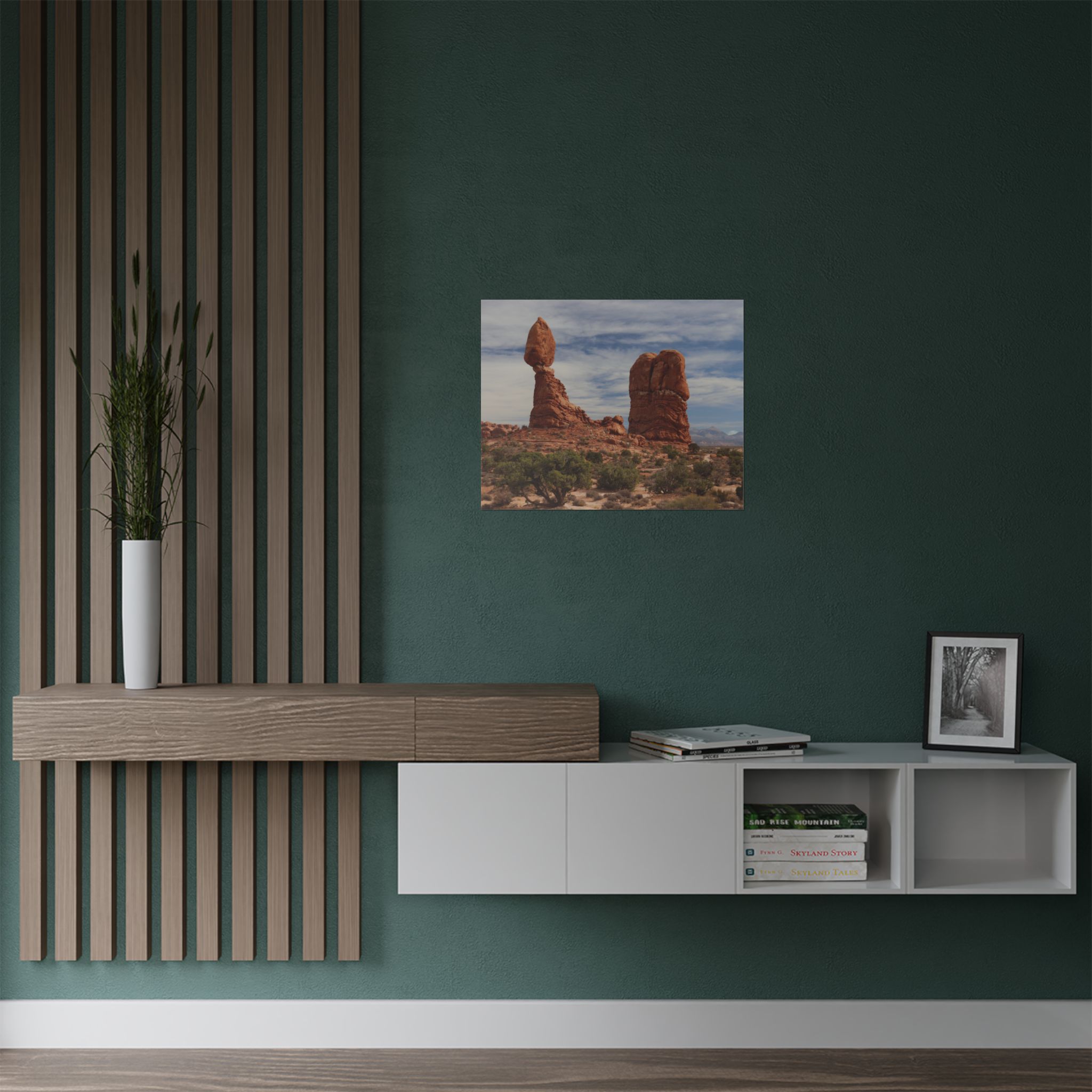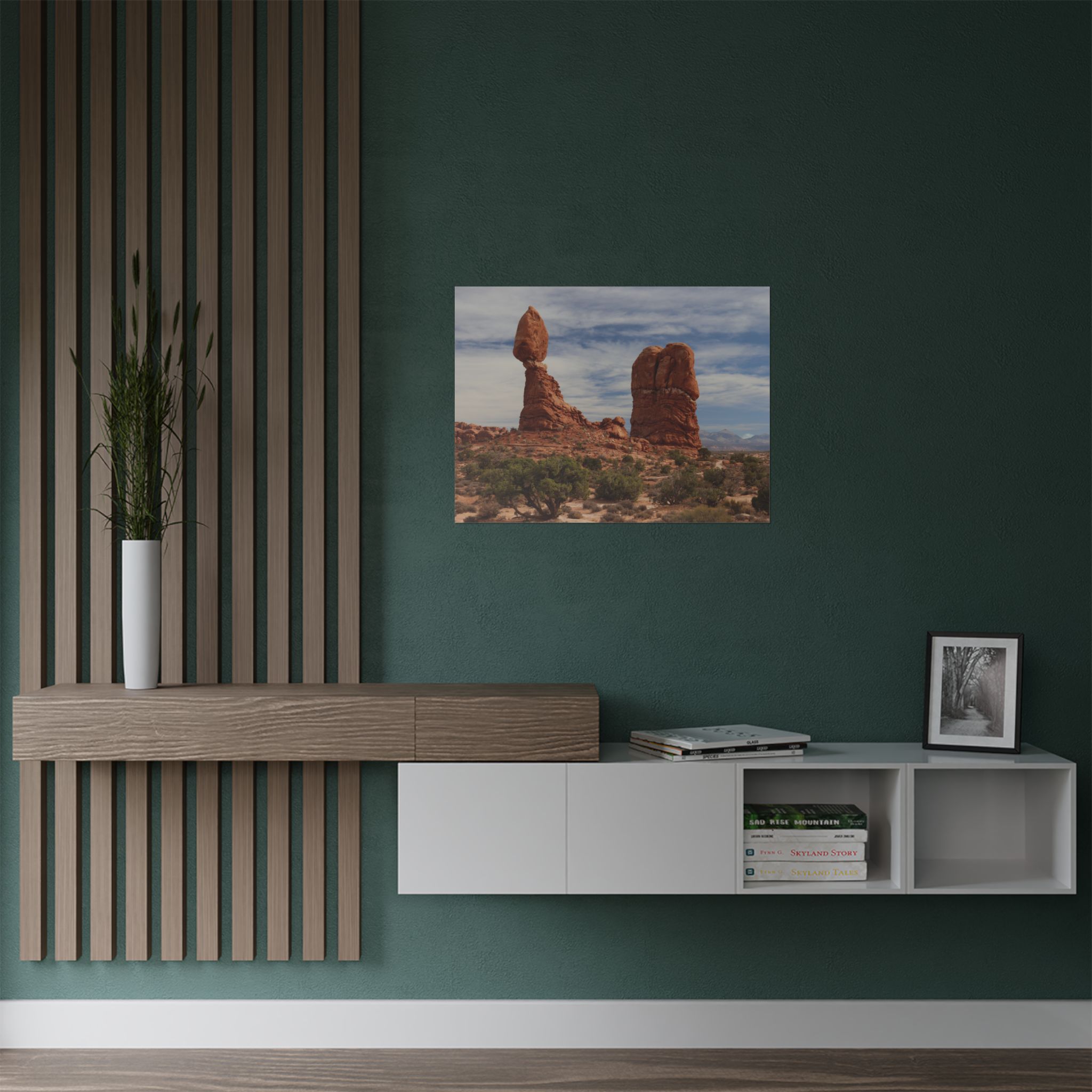 This fine art print captures the iconic Balanced Rock at Arches National Park in Utah, an extraordinary example of natural desert beauty and geological wonder. The bold red sandstone, weathered by centuries of wind and rain, towers against the expansive sky, embodying the timeless spirit of the American Southwest. Whether you’ve explored Arches in person or dream of visiting, this artwork transports you to one of the most beloved parks in the U.S.