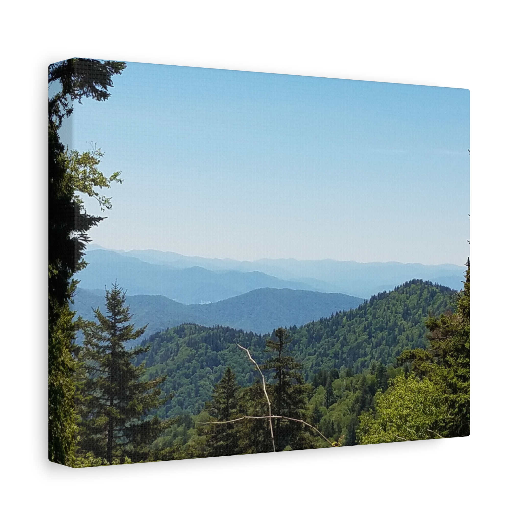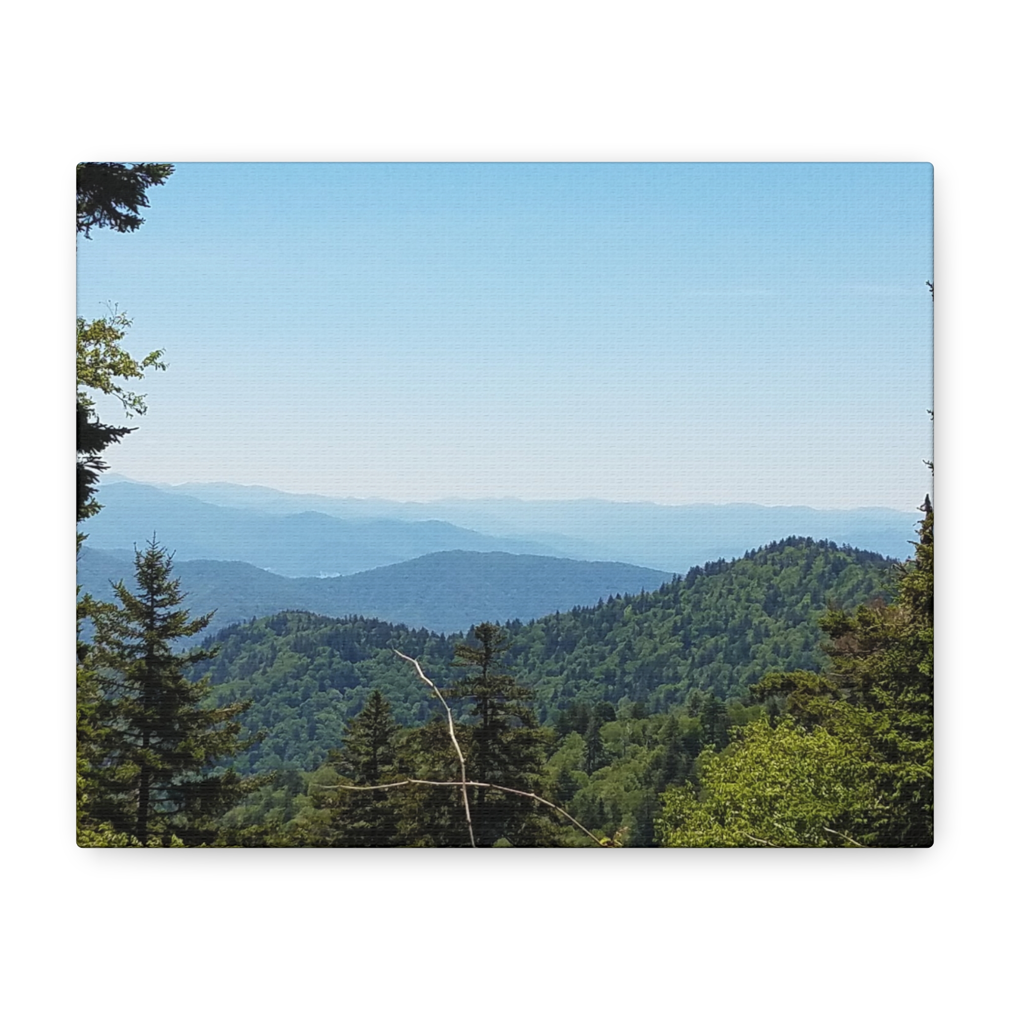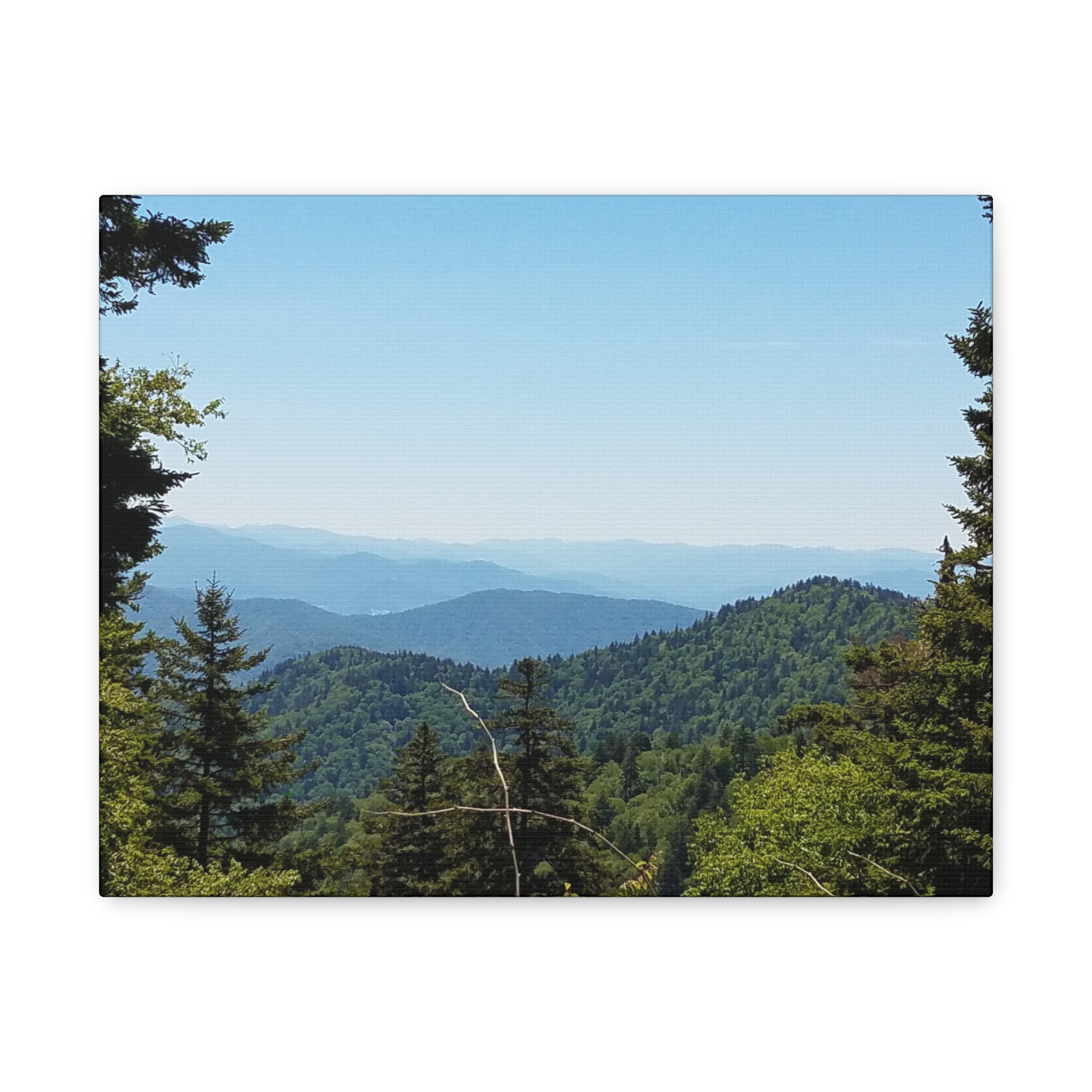 Transform your living space with the timeless beauty of the Blue Ridge Mountains of North Carolina, captured in this breathtaking wrapped canvas print. The image highlights the rolling Appalachian hills, dense evergreen forests, and layered ridgelines fading into the soft blue haze that gives these mountains their name. This landscape wall art offers a window into the tranquil beauty of one of America’s most beloved mountain ranges, perfect for rustic, lodge, farmhouse, or modern home decor.