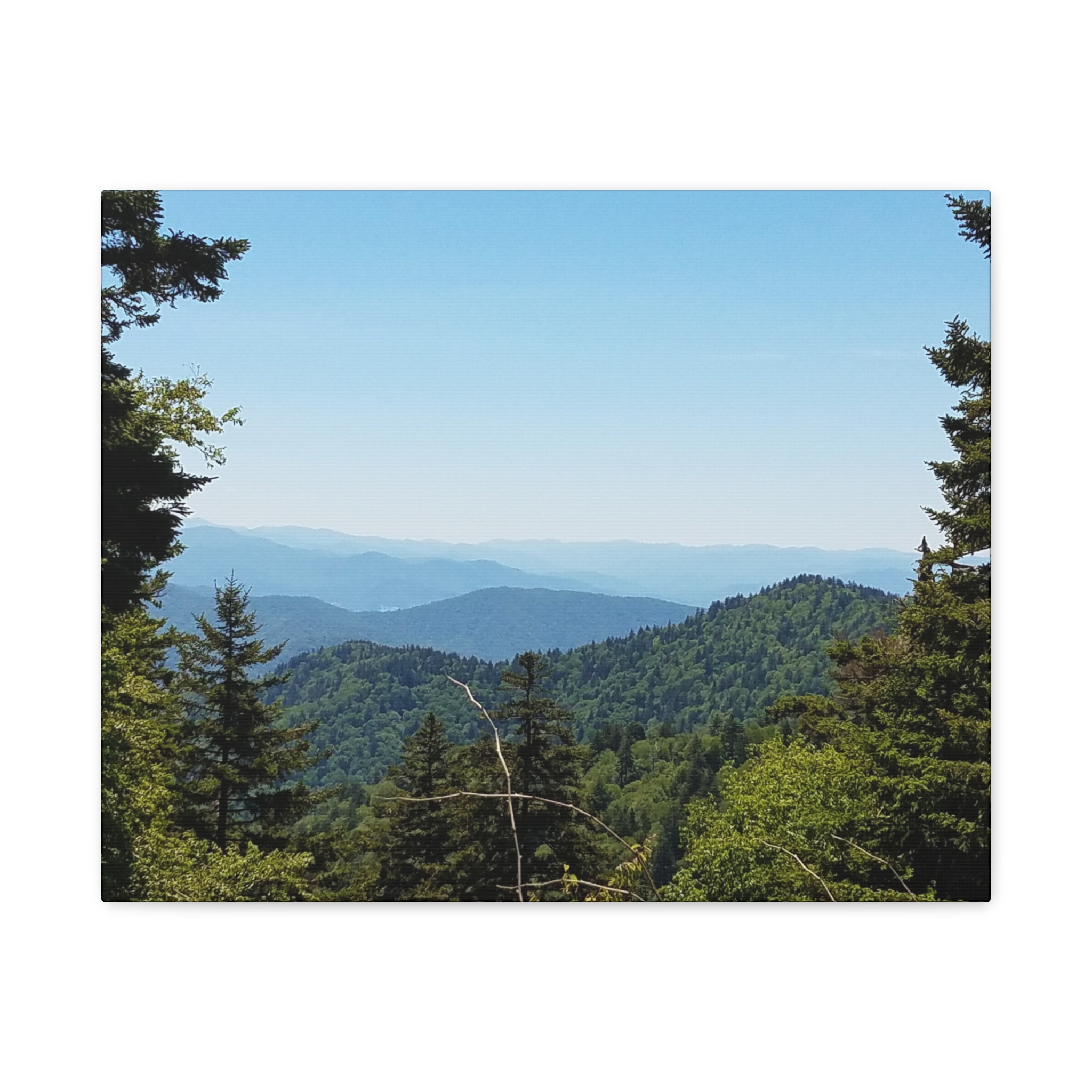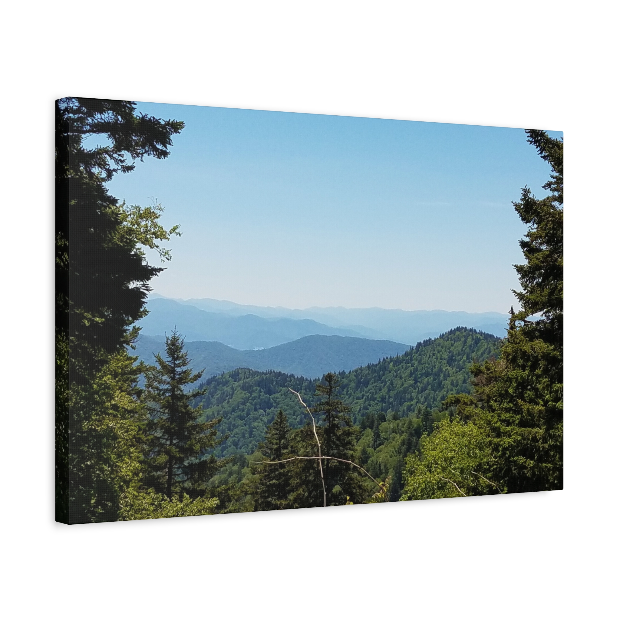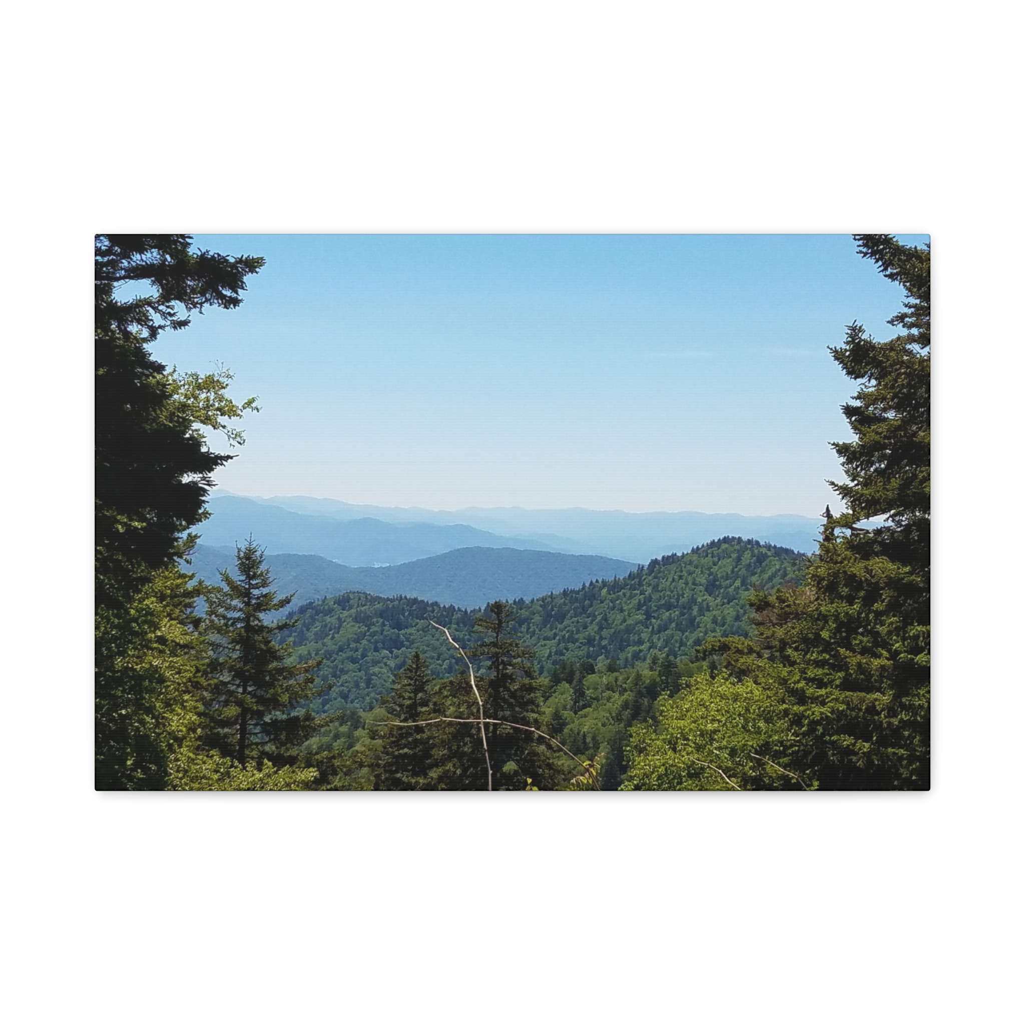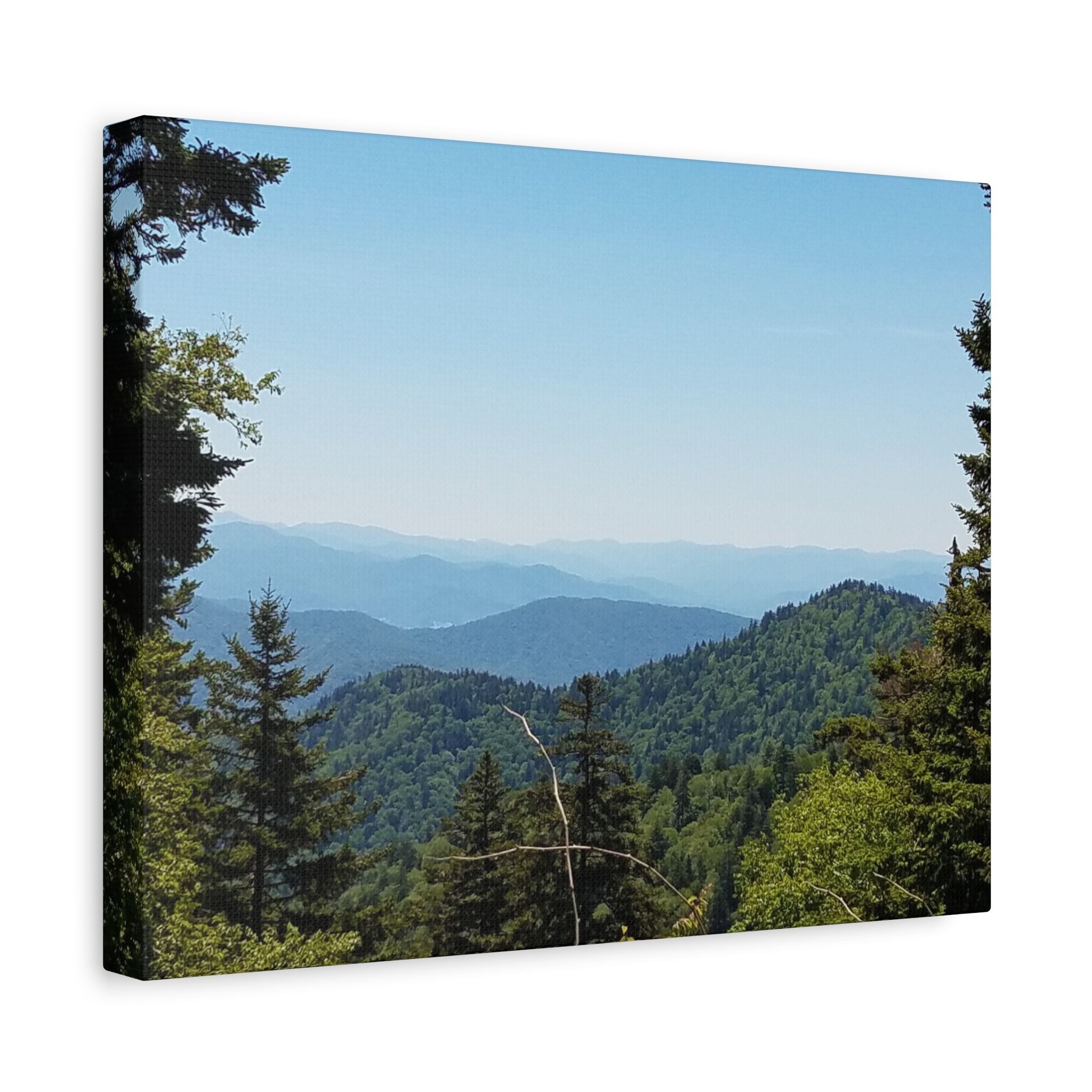 Transform your living space with the timeless beauty of the Blue Ridge Mountains of North Carolina, captured in this breathtaking wrapped canvas print. The image highlights the rolling Appalachian hills, dense evergreen forests, and layered ridgelines fading into the soft blue haze that gives these mountains their name. This landscape wall art offers a window into the tranquil beauty of one of America’s most beloved mountain ranges, perfect for rustic, lodge, farmhouse, or modern home decor.