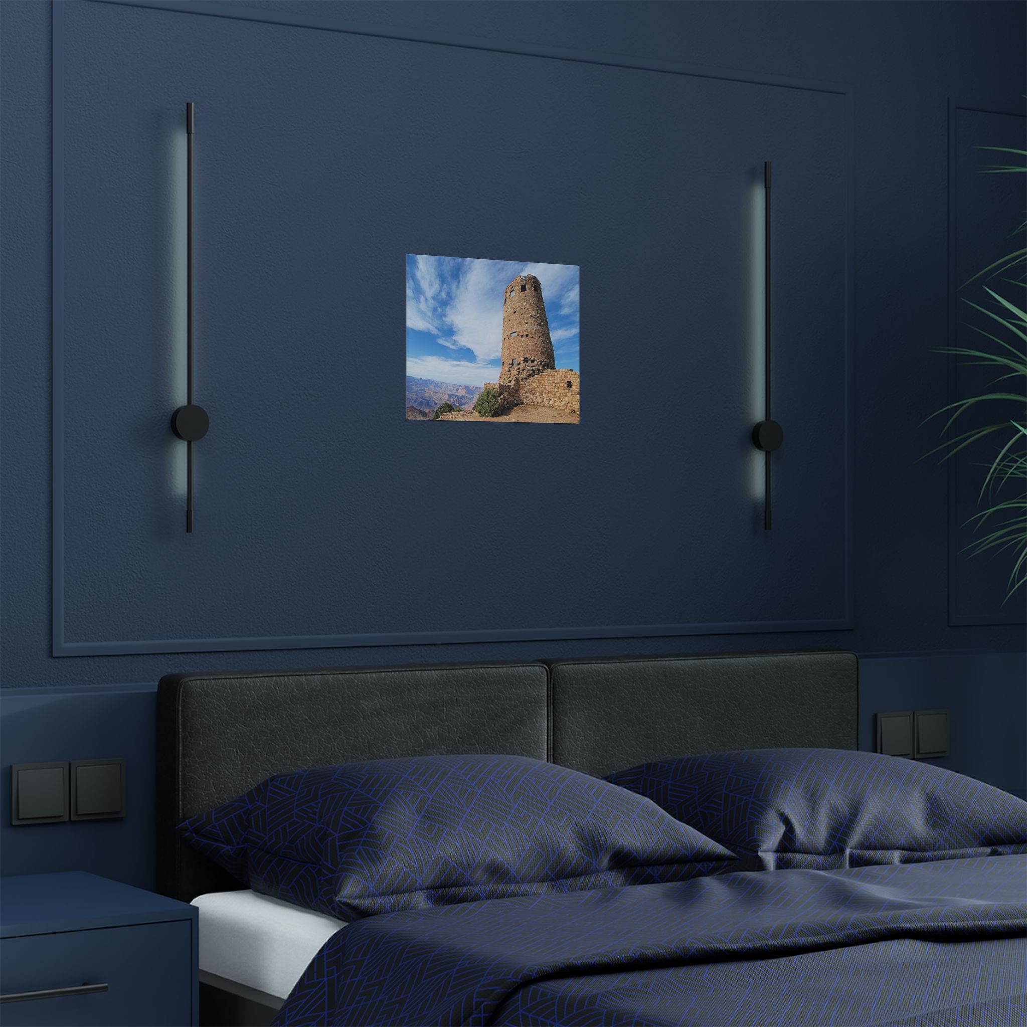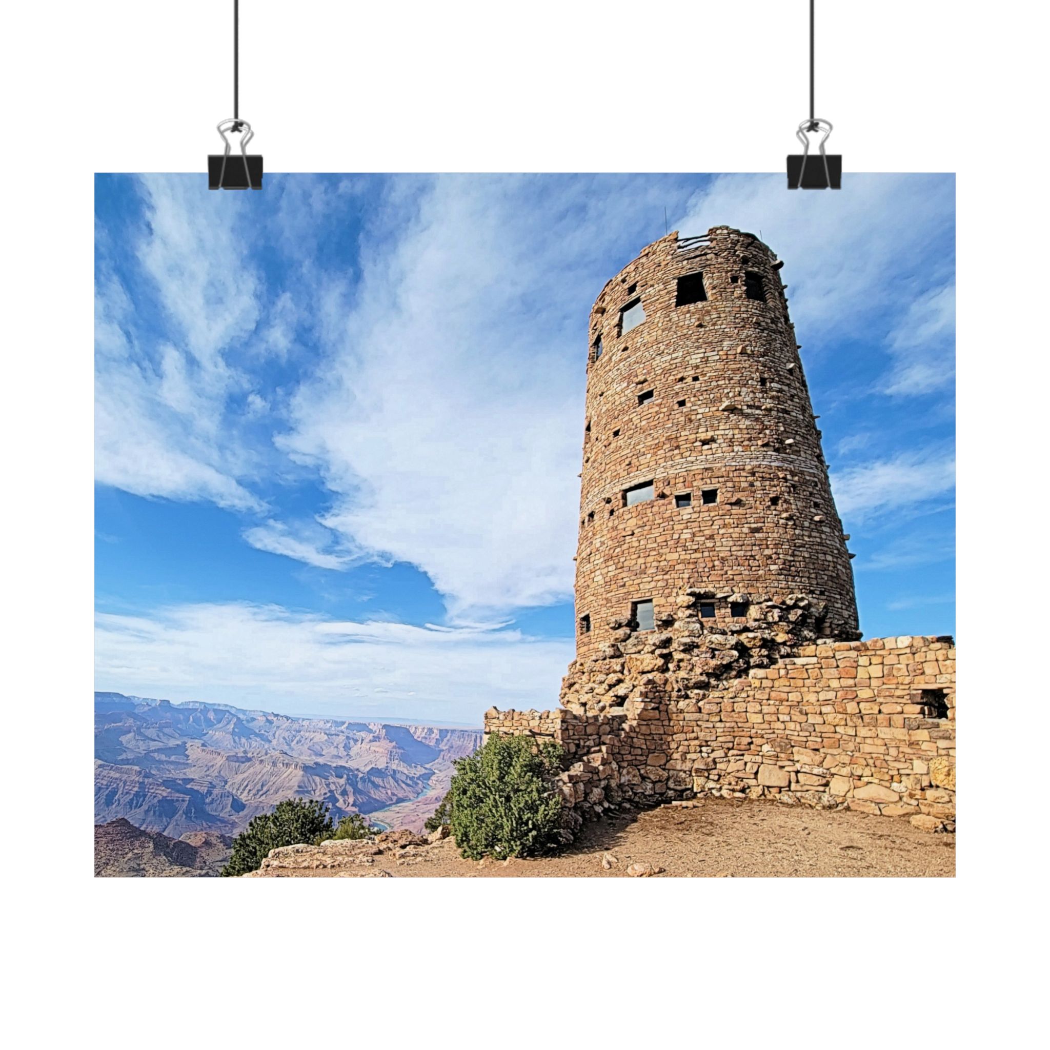 Honor the beauty and cultural legacy of the Grand Canyon with this museum-quality fine art giclée print of the Desert View Watchtower. Designed in 1932 by architect Mary Colter to reflect ancient Puebloan watchtowers, this iconic structure stands as both a tribute to Indigenous architecture and a lookout over one of the most majestic views in the canyon.