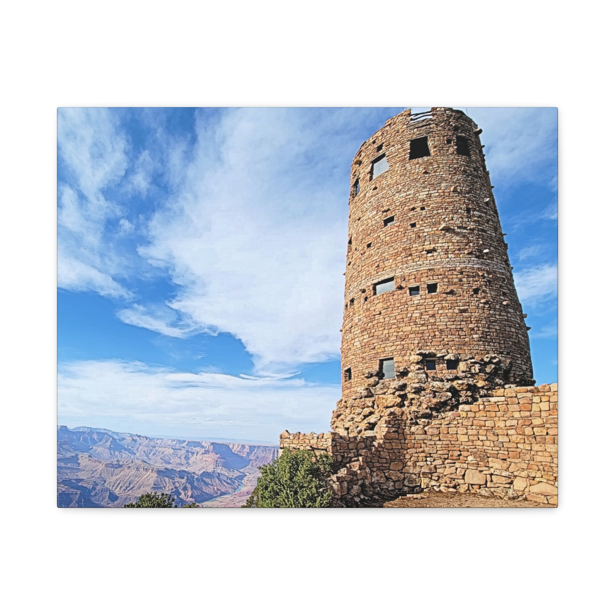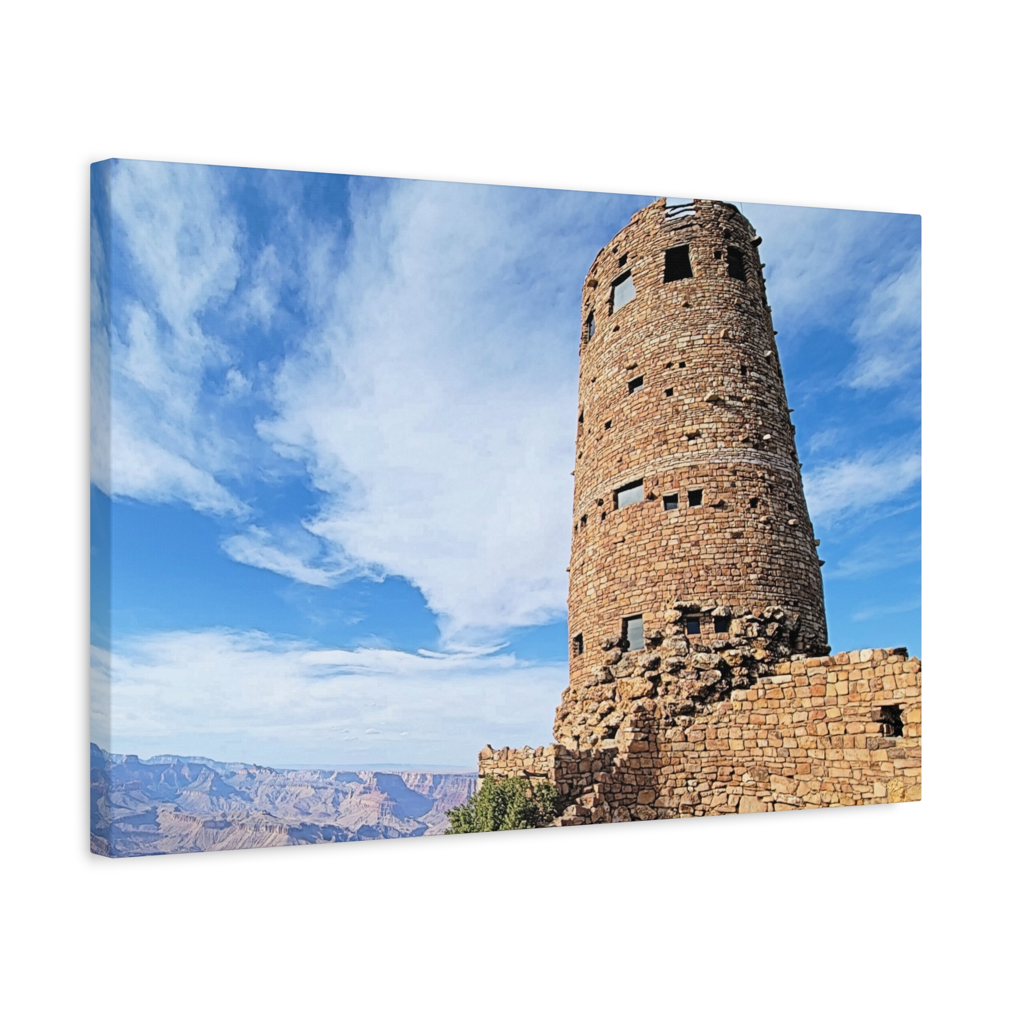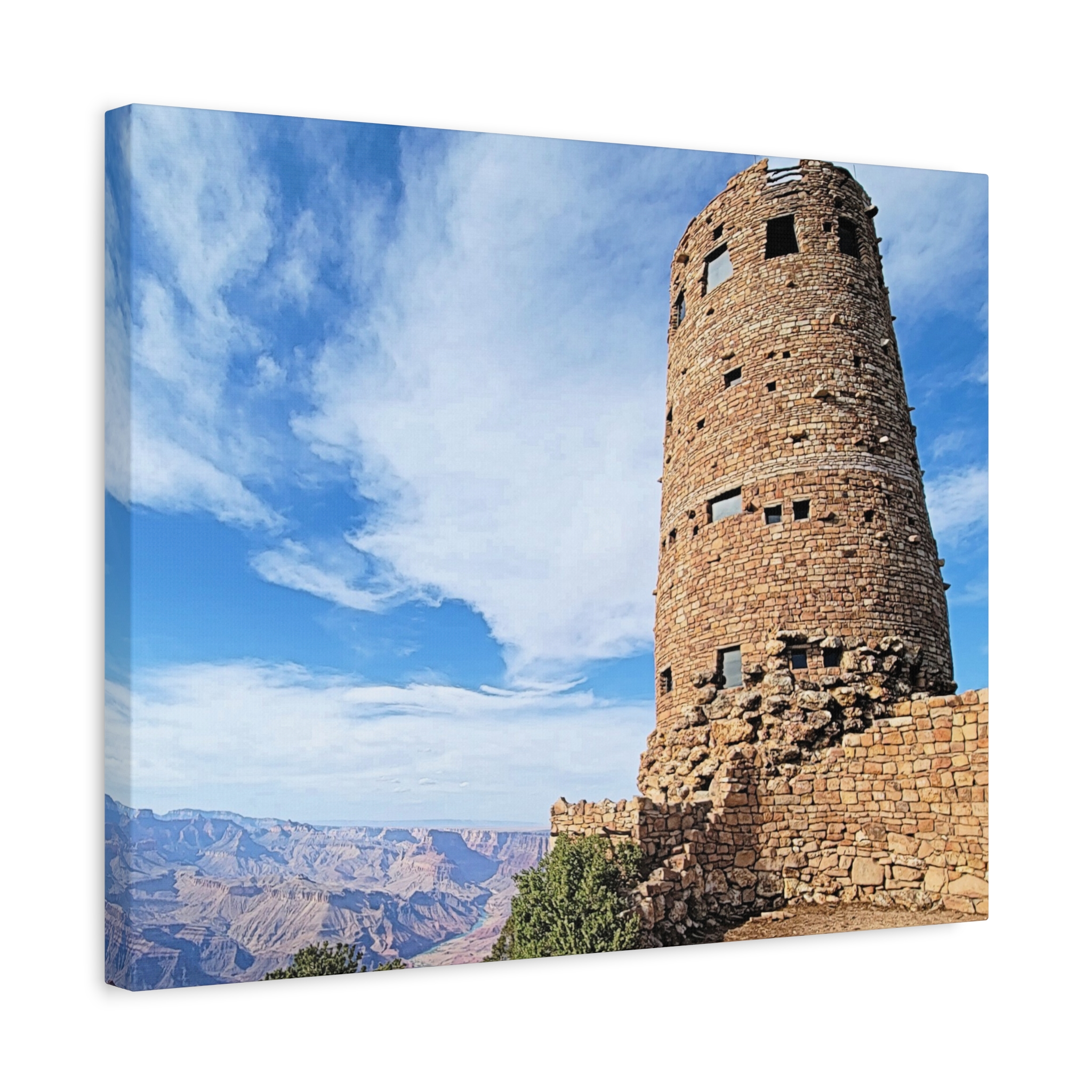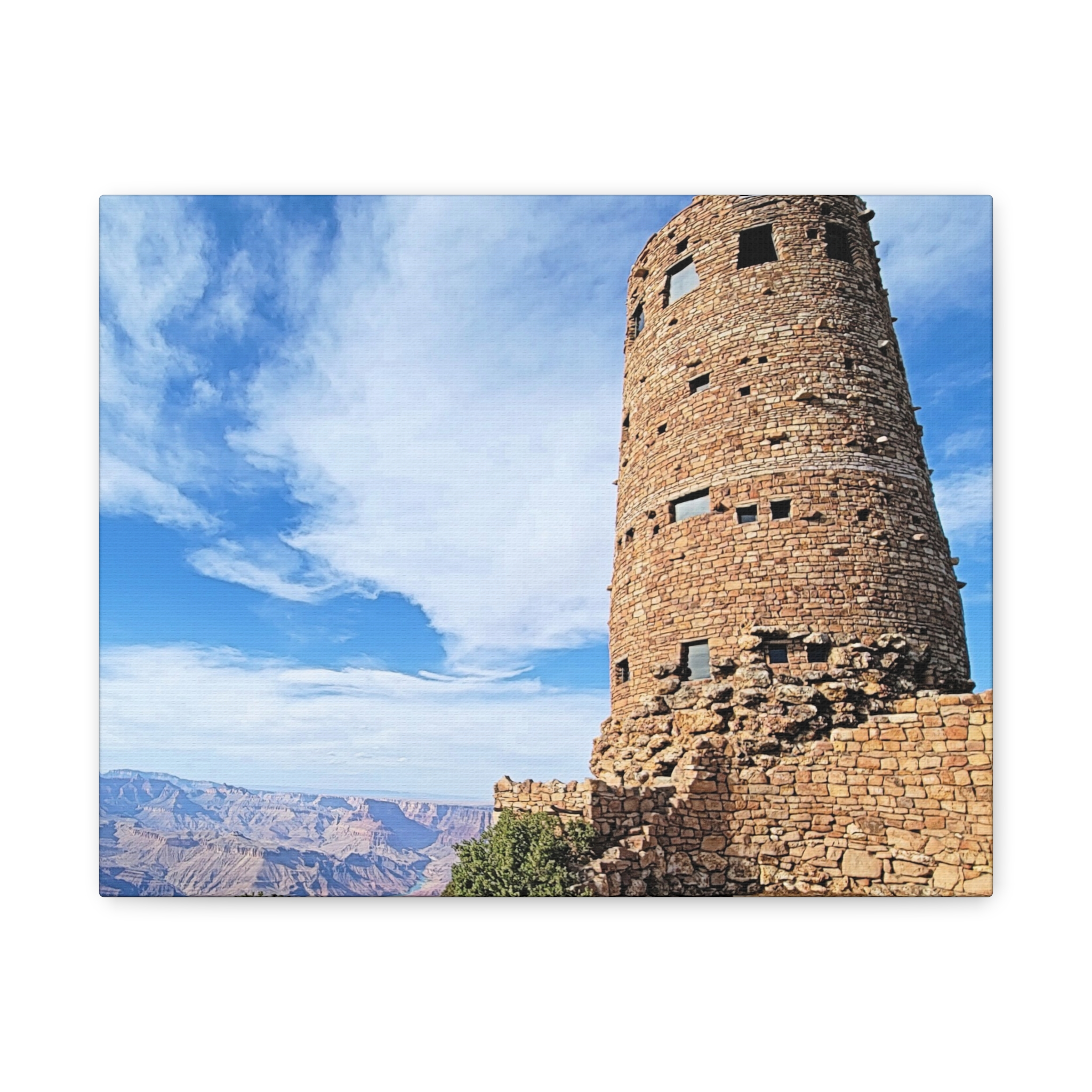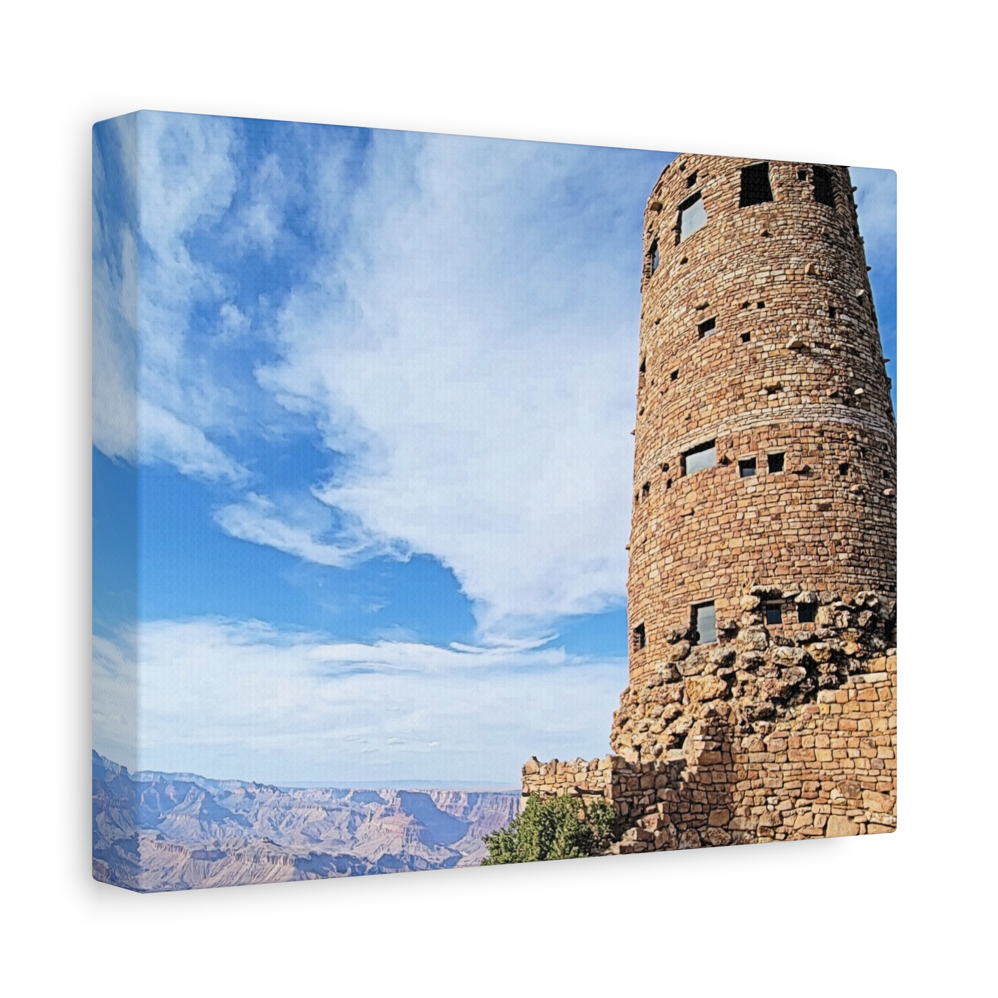 Capture the spirit of the Grand Canyon with this bold and timeless wrapped canvas print of the Desert View Watchtower. Standing tall on the canyon’s eastern rim, this architectural marvel was inspired by ancestral Puebloan stone towers and offers one of the most breathtaking panoramic views in the Southwest.
