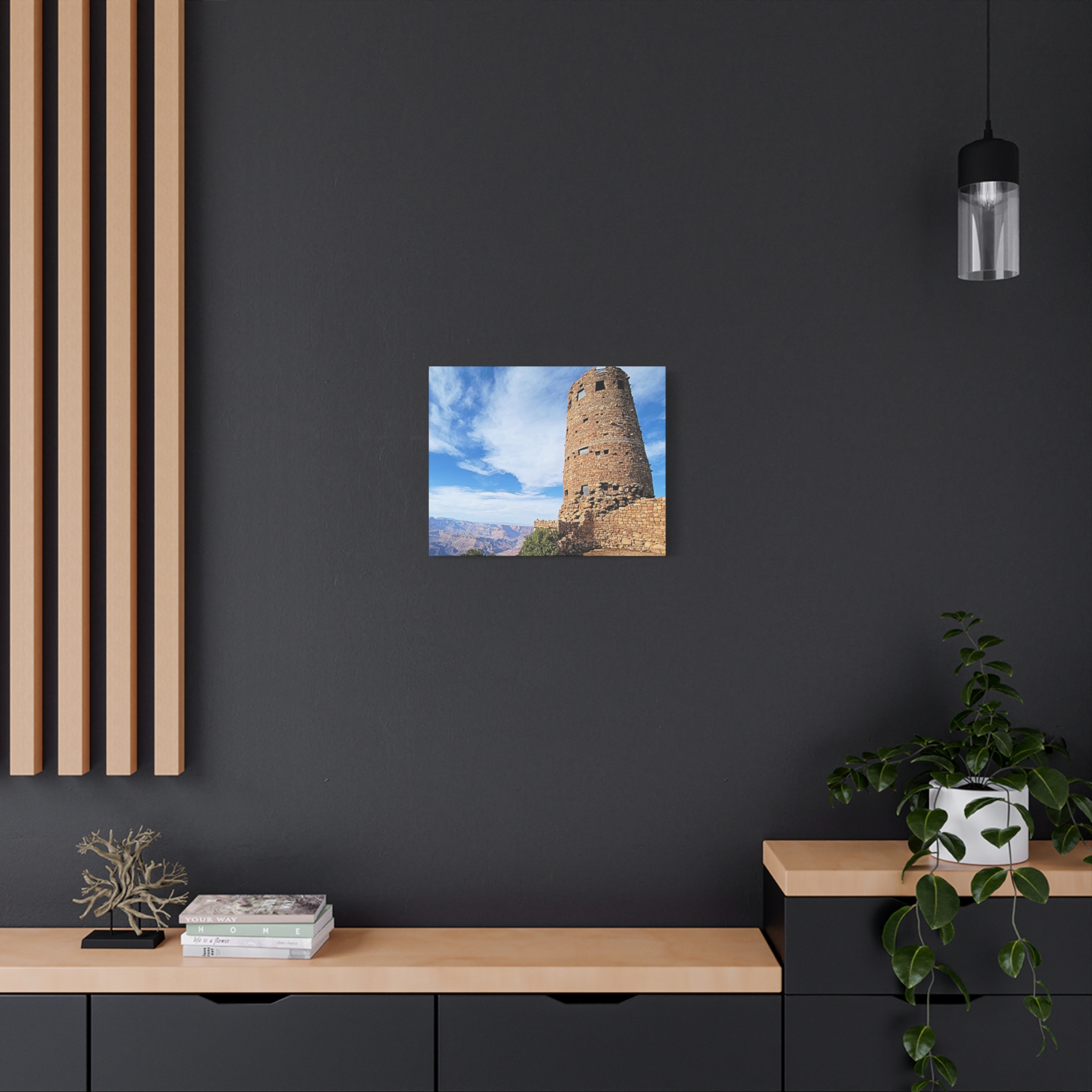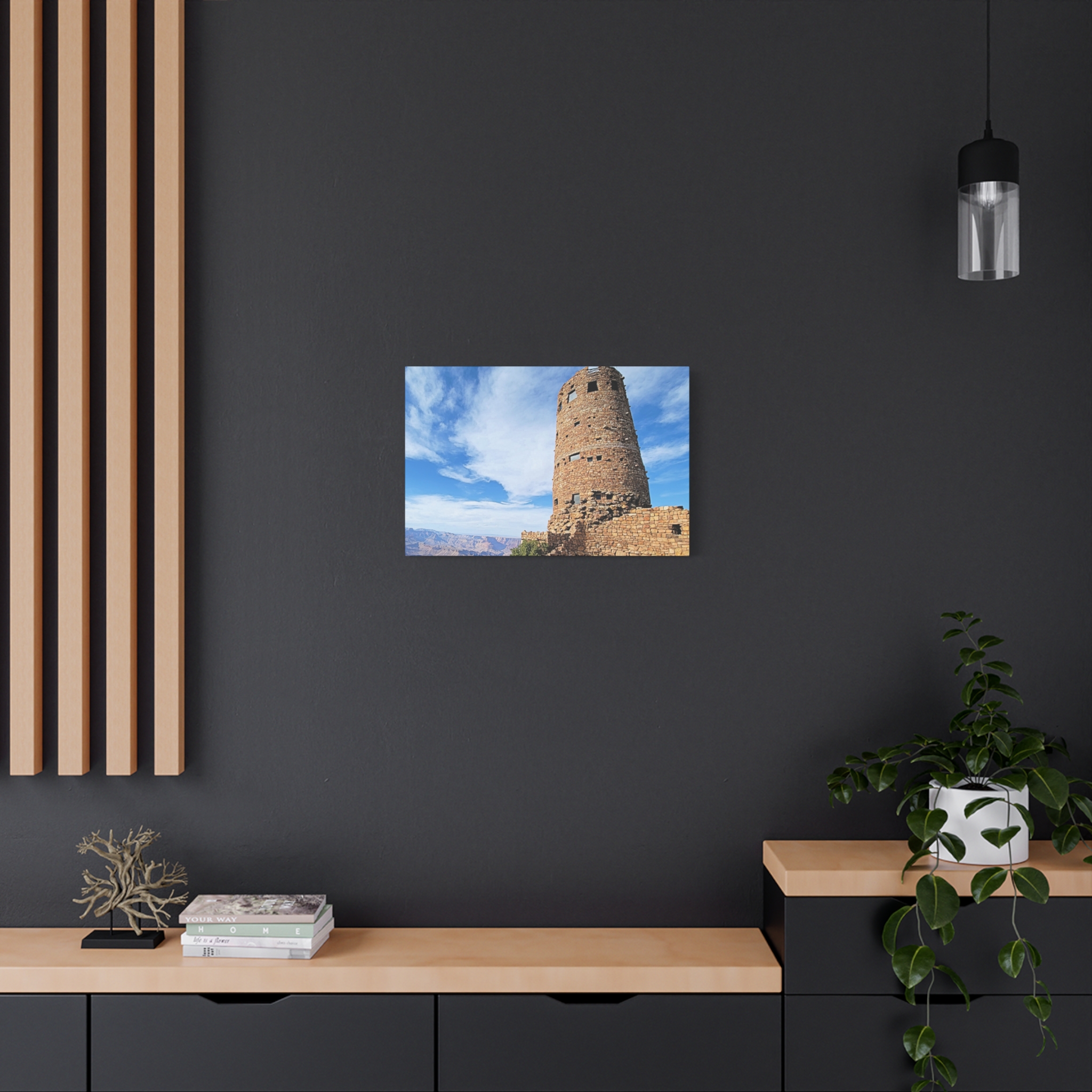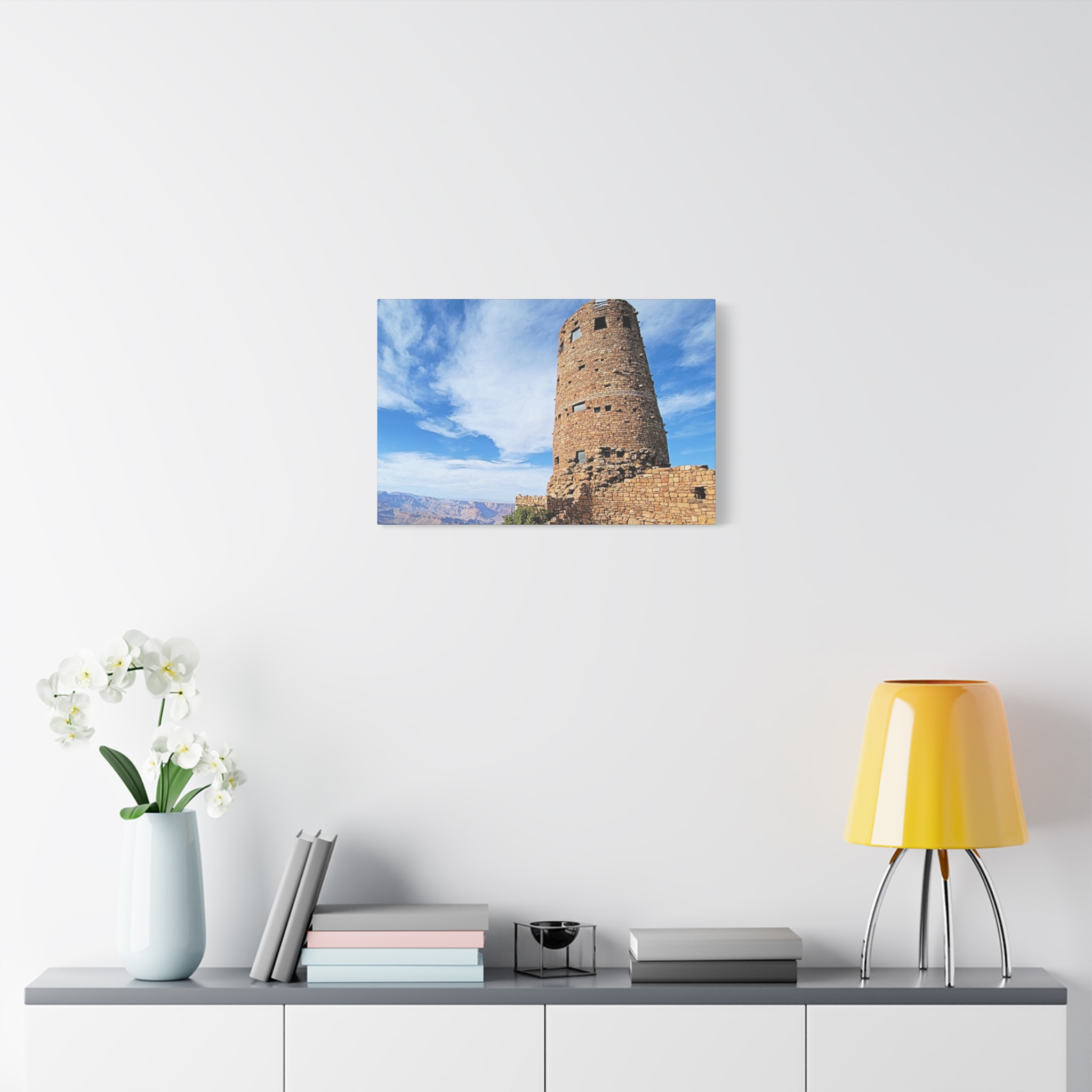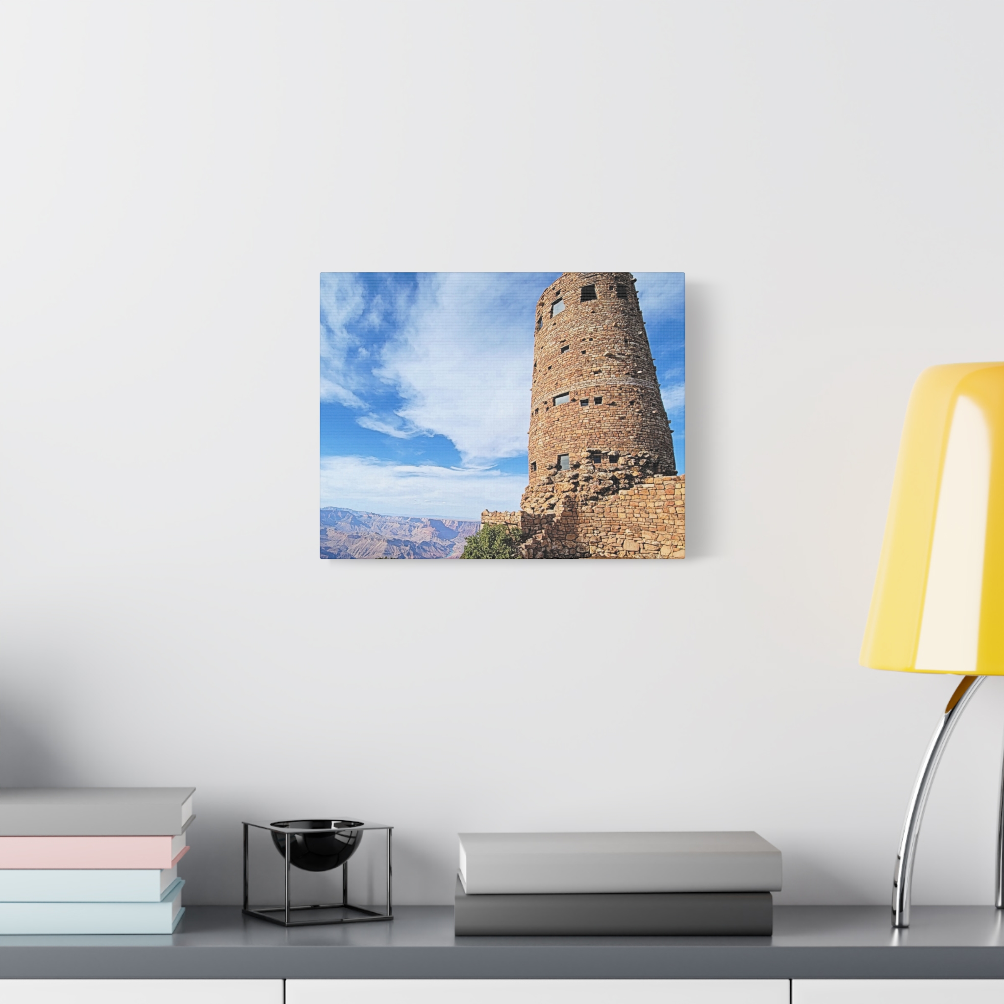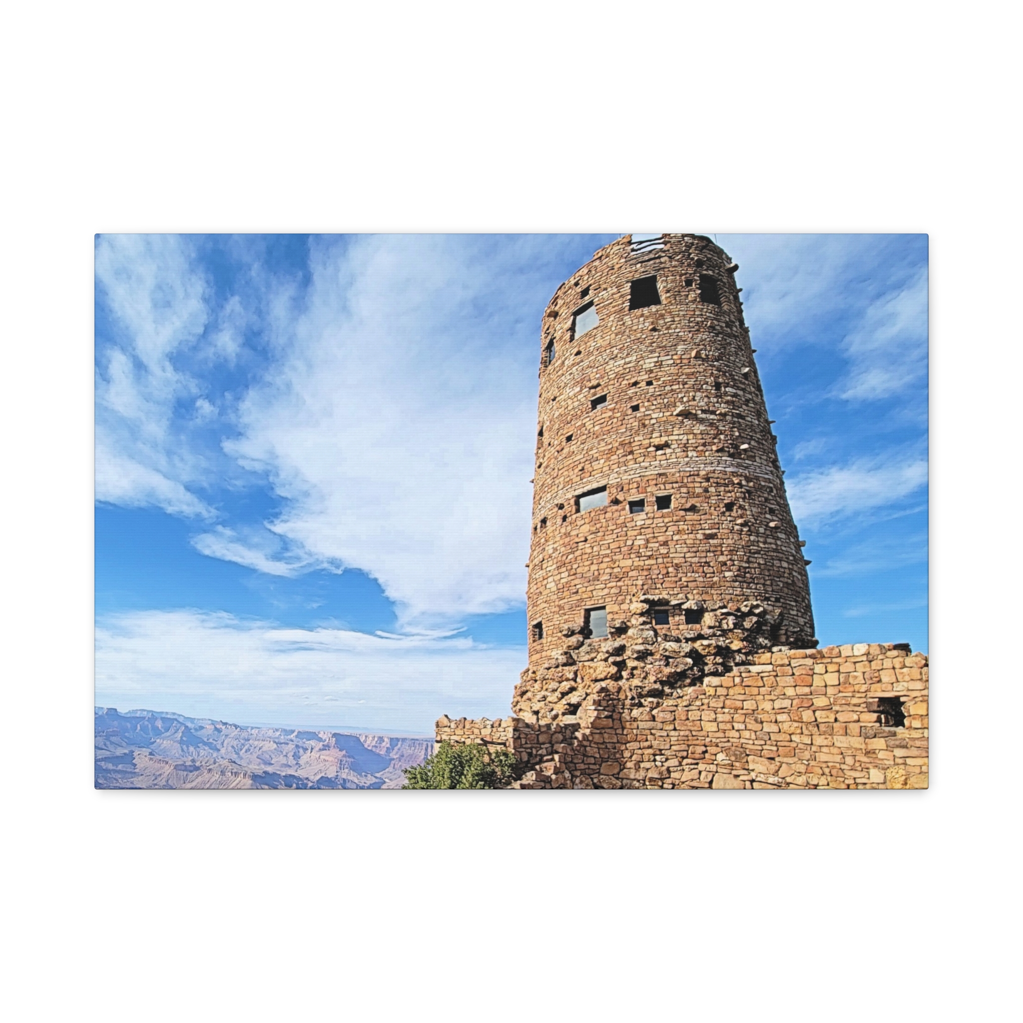 Capture the spirit of the Grand Canyon with this bold and timeless wrapped canvas print of the Desert View Watchtower. Standing tall on the canyon’s eastern rim, this architectural marvel was inspired by ancestral Puebloan stone towers and offers one of the most breathtaking panoramic views in the Southwest.