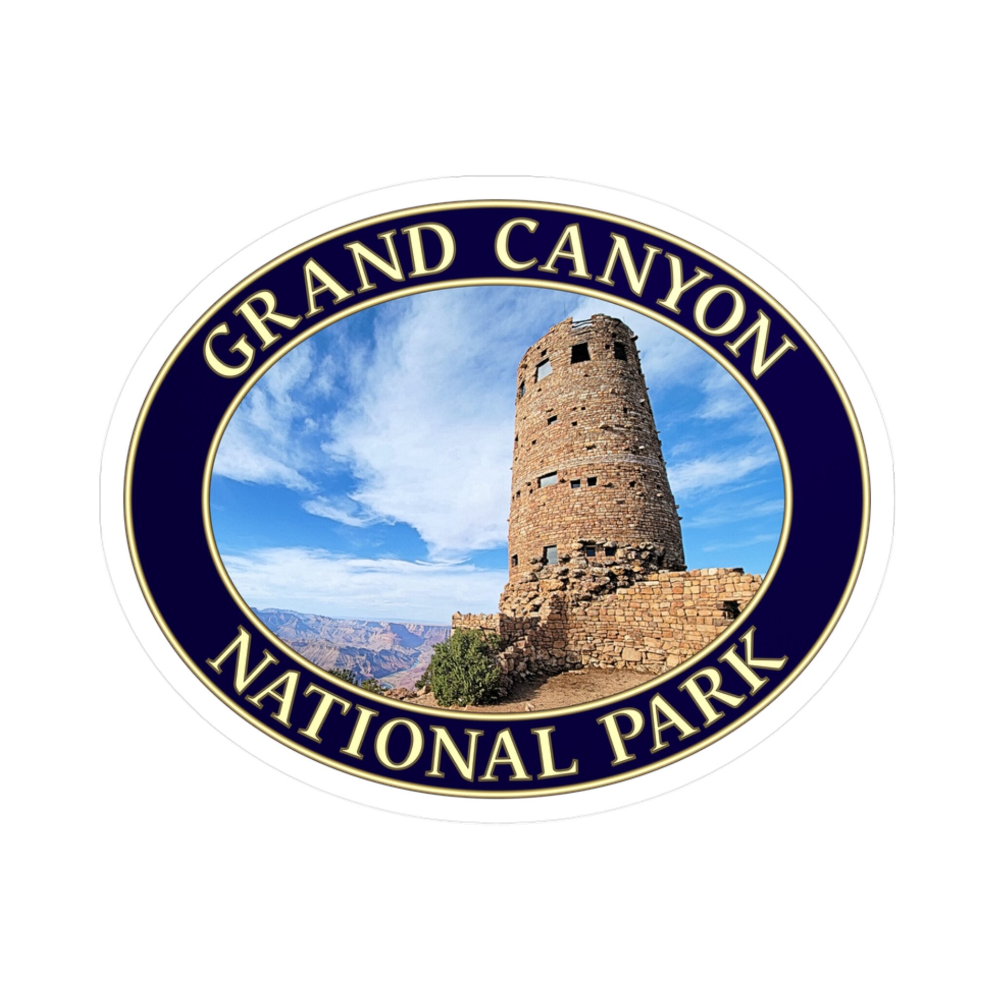 Celebrate one of the most breathtaking viewpoints in the American Southwest with this GentleSeas Grand Canyon National Park Oval Sticker featuring the historic Desert View Watchtower. Showcasing the timeless beauty of this iconic stone structure against Arizona’s brilliant blue skies, this premium vinyl decal captures the awe and spirit of adventure that define the Grand Canyon experience.
