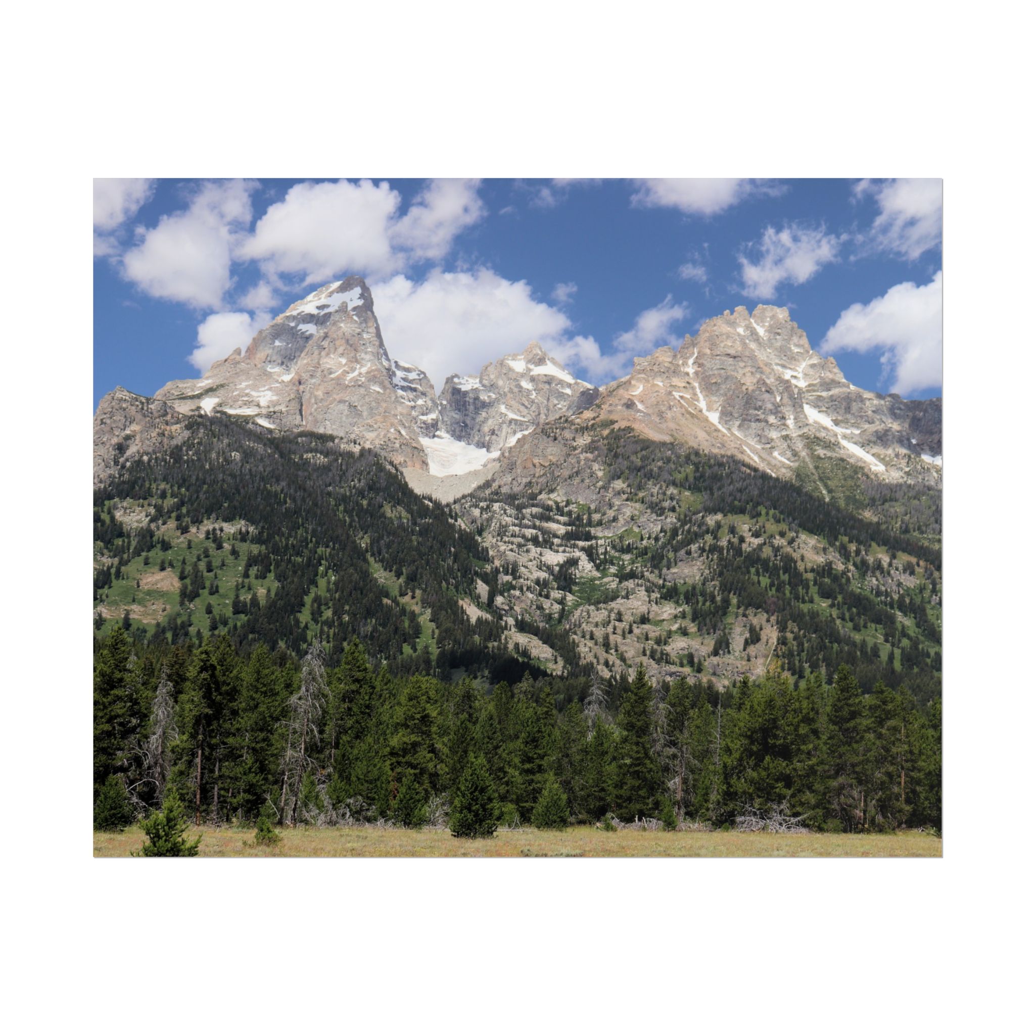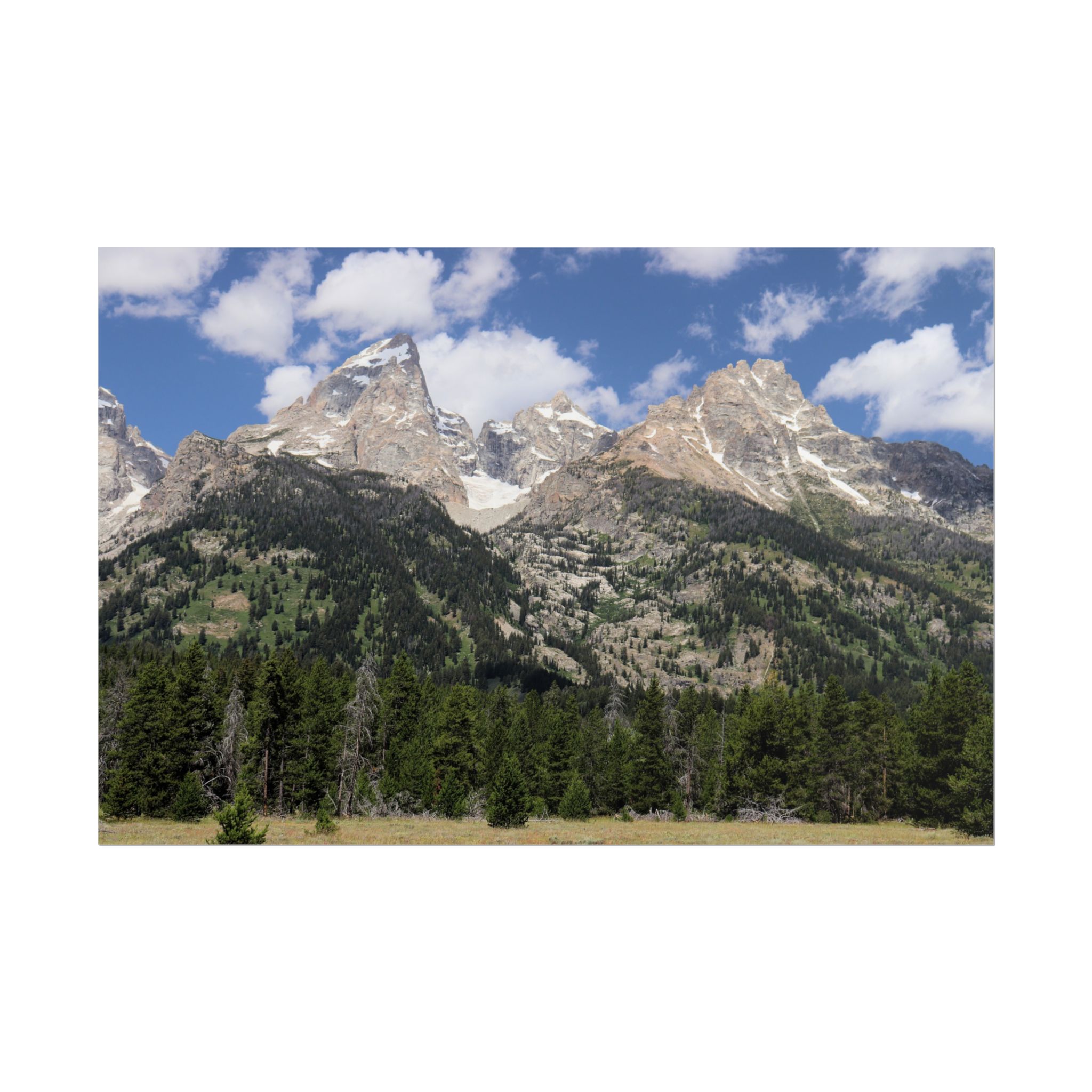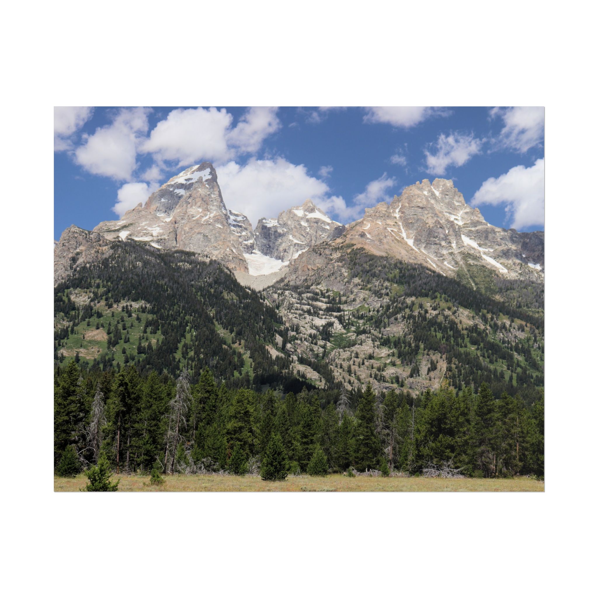 Capture the breathtaking beauty of the Grand Teton Mountains at Grand Teton National Park with this striking photograph showcasing snow-dusted peaks, lush pine forests, and expansive skies. Perfect for anyone who loves the rugged wilderness of Wyoming, this landscape print brings the spirit of the American West into your living space.