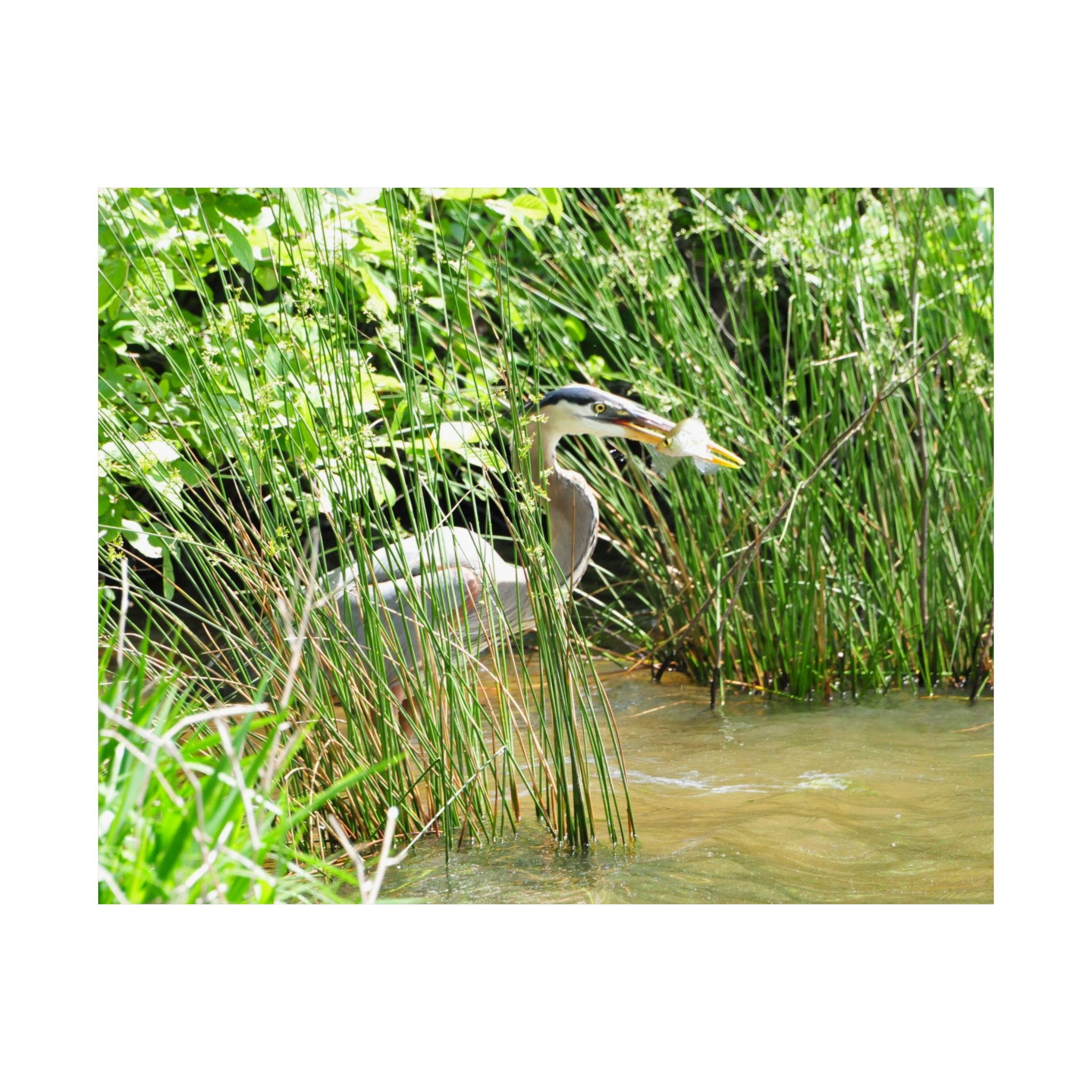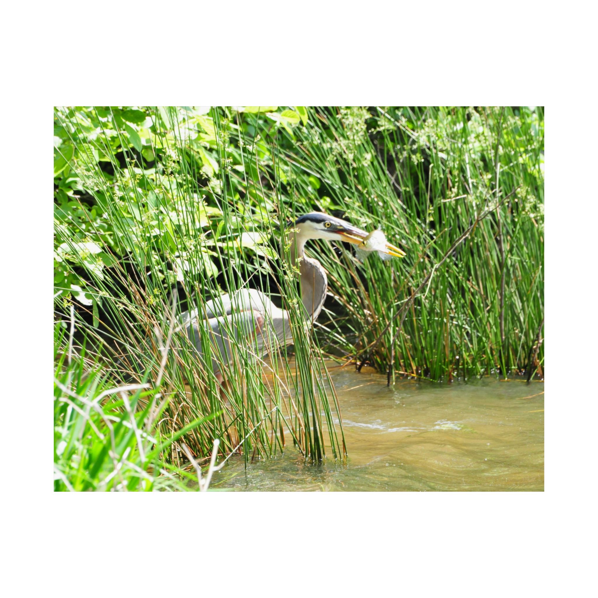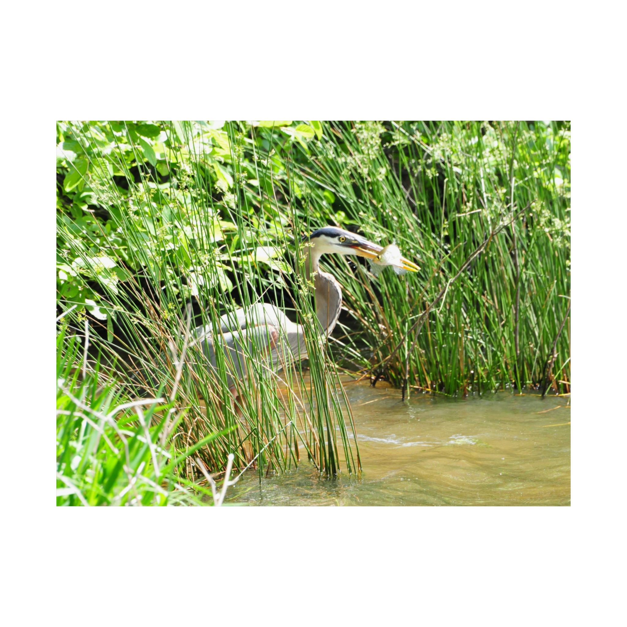 Great Blue Heron Wildlife Photography Print – Iconic Bird Catching Fish in Eastern North Carolina Wetlands – Fine Art Nature Print on 300 gsm Paper for Coastal Décor, Birdwatchers, and Wildlife Enthusiasts