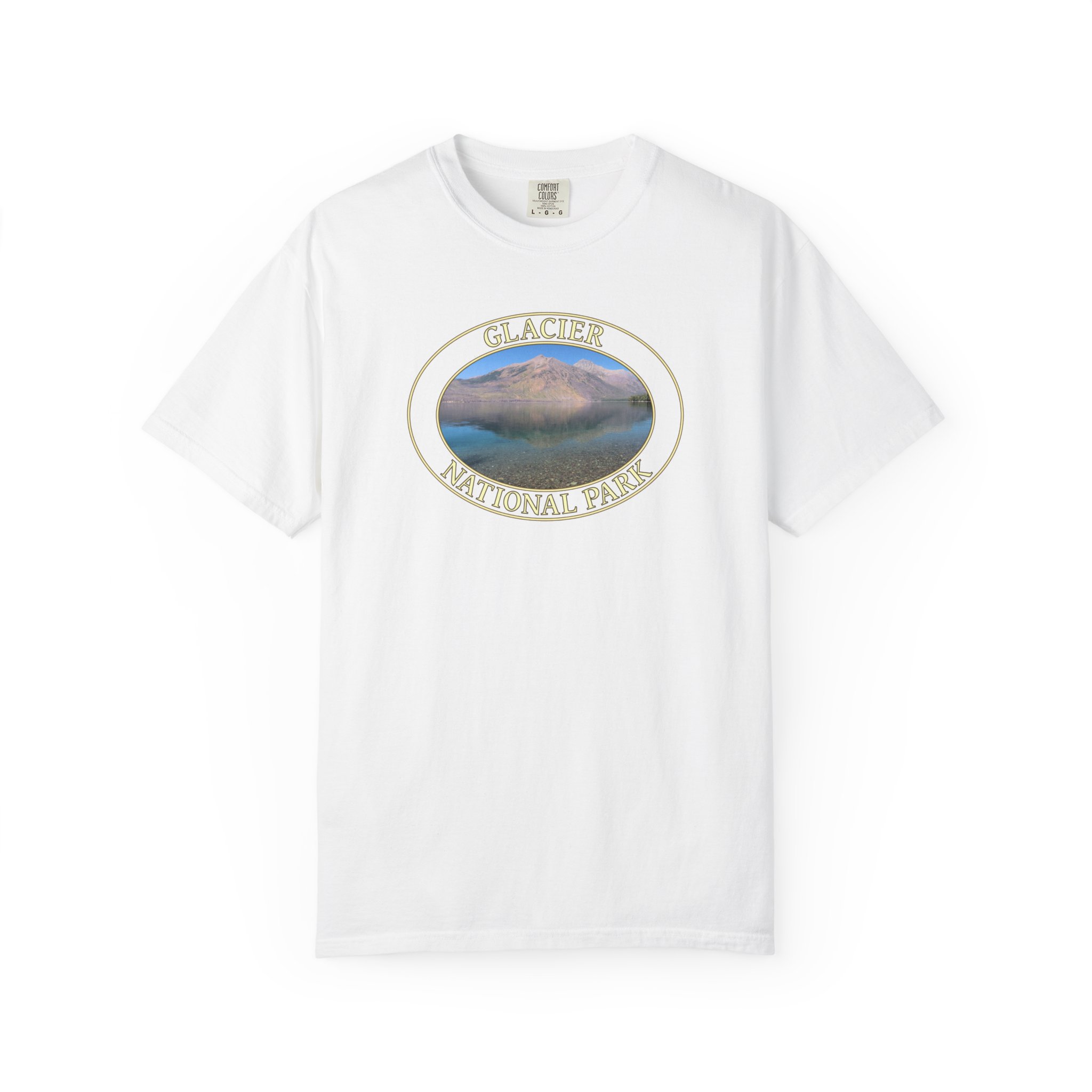 Experience the serene beauty of Lake McDonald at Glacier National Park with this original scenic photograph. Calm waters mirror the rugged mountains and endless sky, capturing the peaceful spirit of Montana’s wilderness. The gentle light and natural colors evoke the tranquility of the park, making this shirt perfect for those who cherish national parks and the art of nature photography.