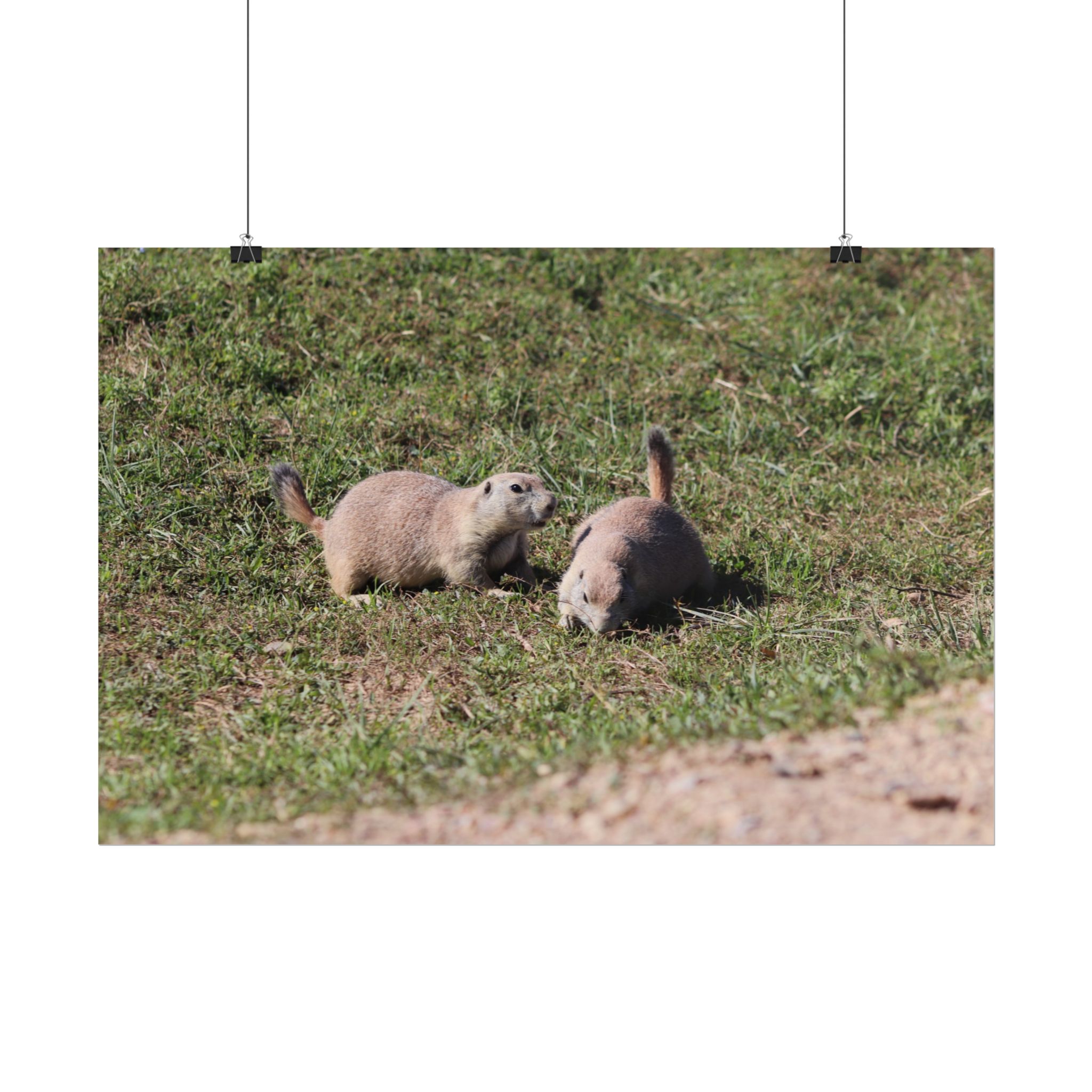 Prairie Dog Couple in Badlands National Park South Dakota Wildlife Photography – Black-Tailed Prairie Dogs in Natural Grassland Habitat – Nature and Conservation Wall Art Matte Print