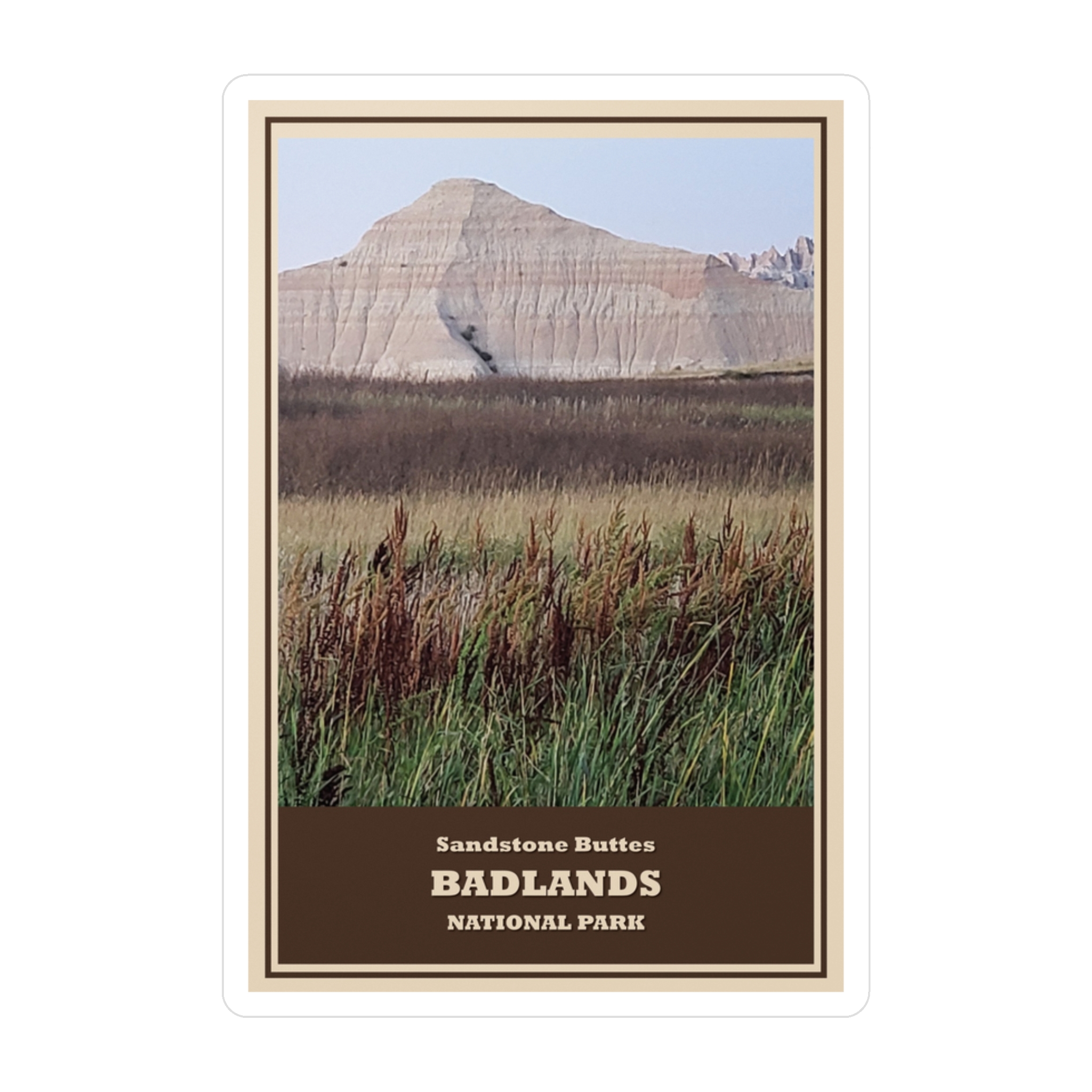 Bring home the peaceful beauty of the Badlands and help protect the landscapes you love. Add this scenic reeds-and-buttes sticker to your collection today—your purchase supports conservation!