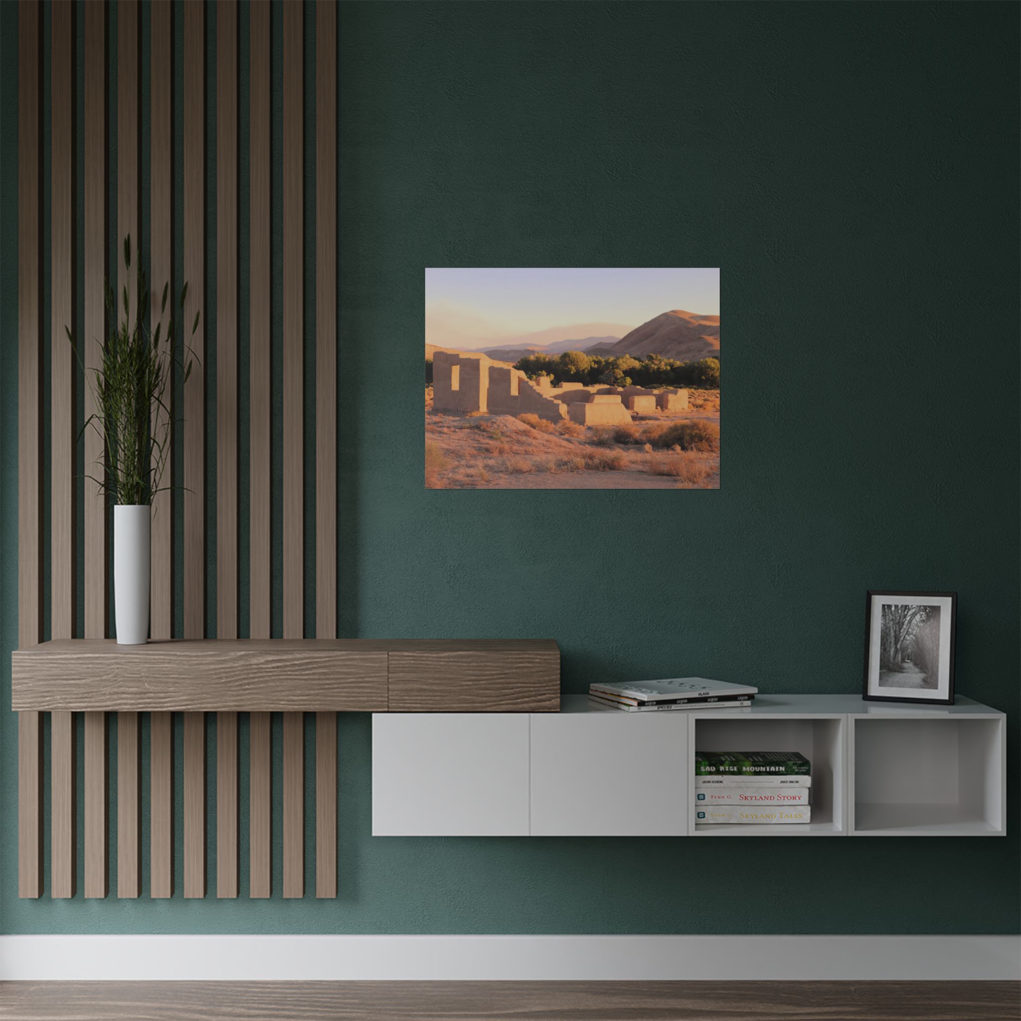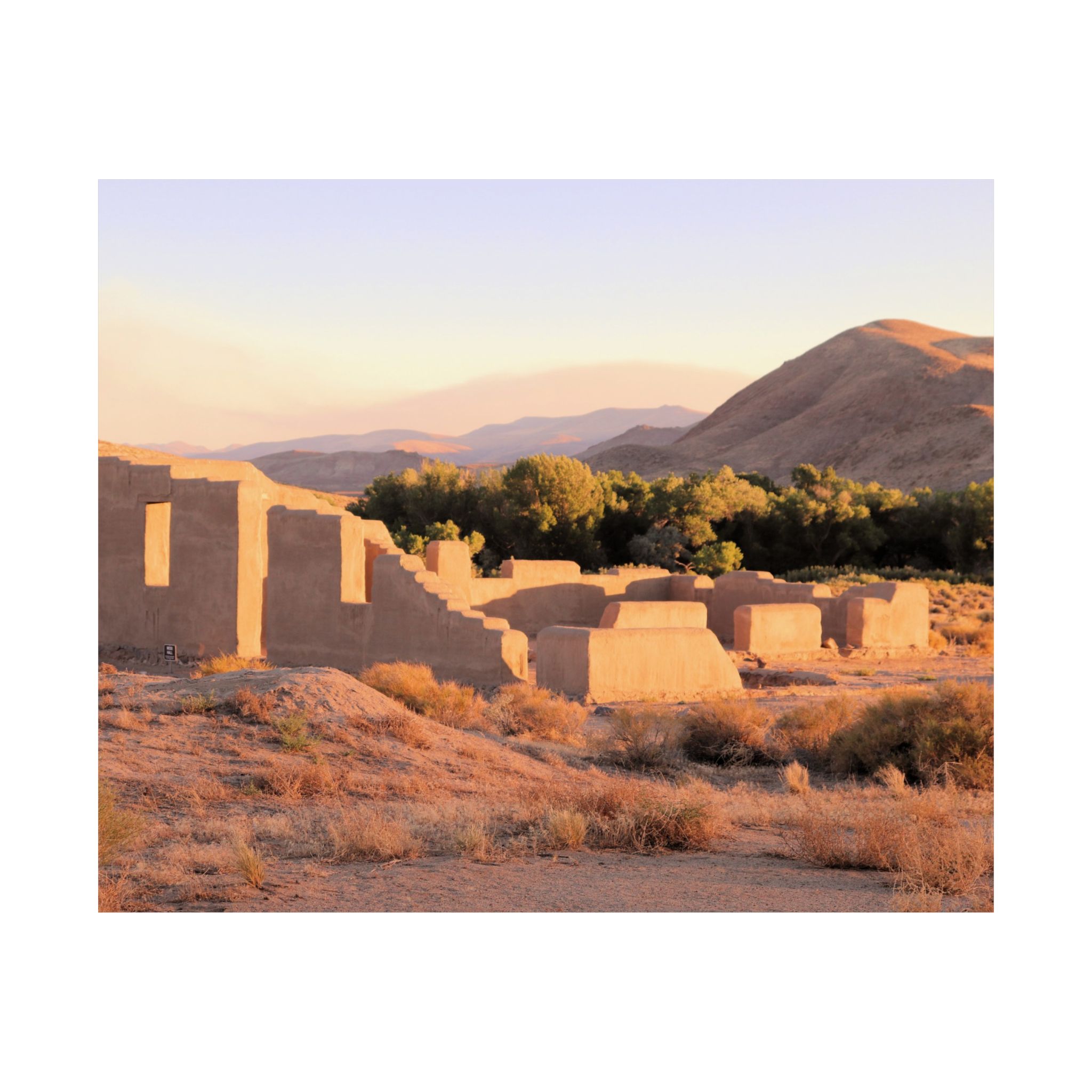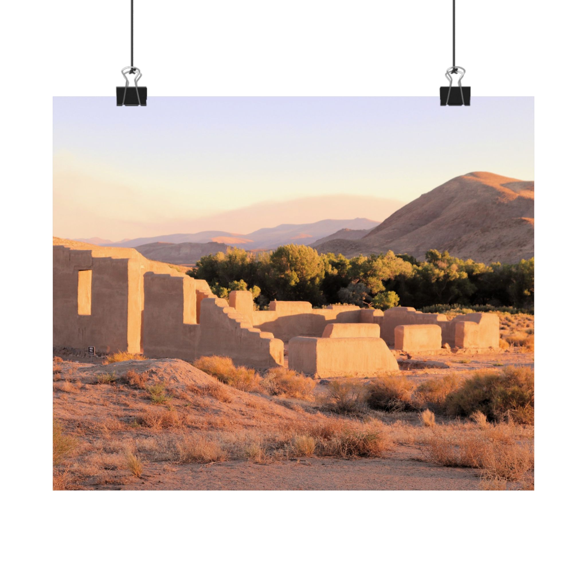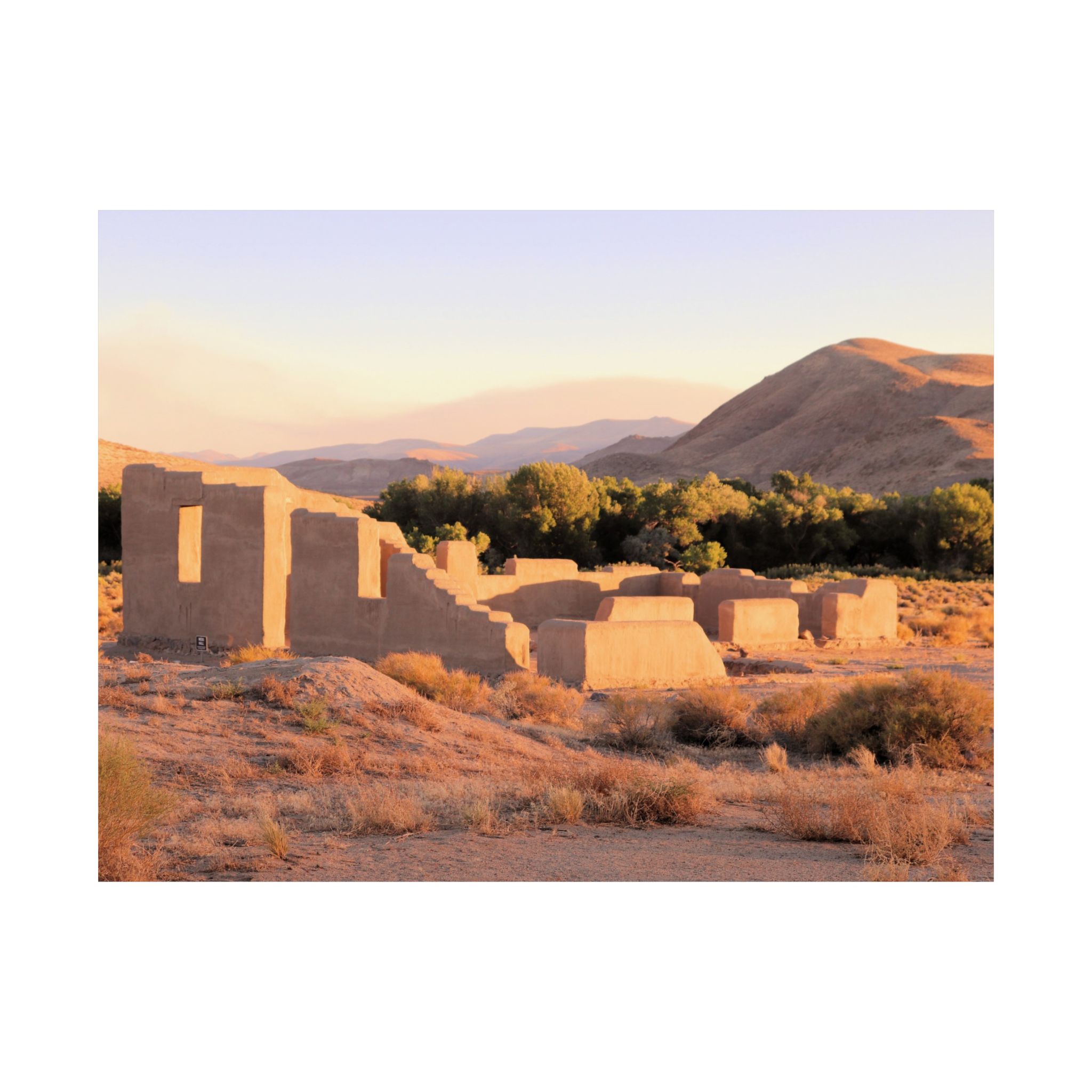 Printed on archival-quality 300 gsm fine art paper, this museum-grade reproduction enhances the texture of the adobe walls, the golden tones of the desert, and the sweeping Nevada skies. The heavyweight matte paper provides a refined gallery presentation for collectors and history lovers alike.