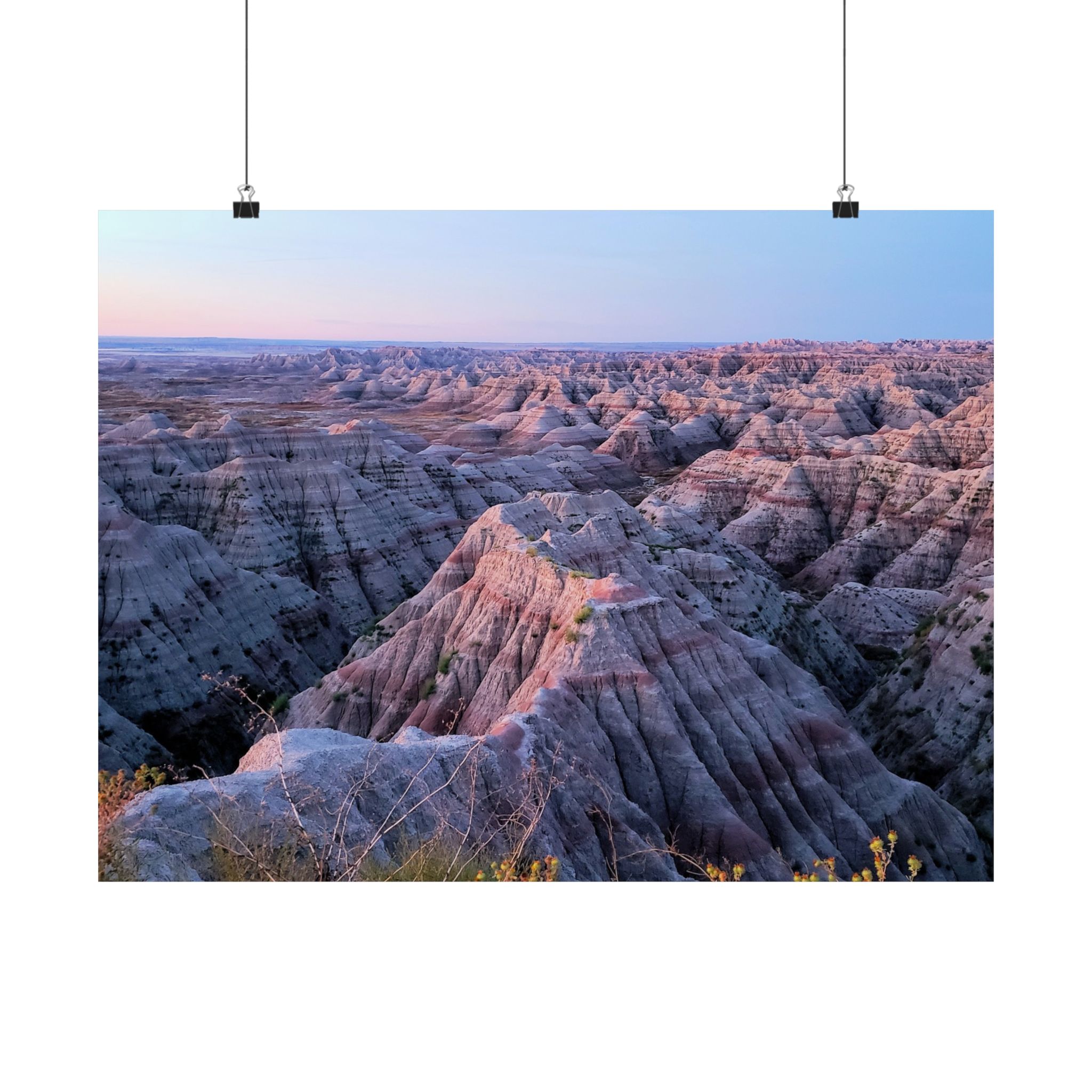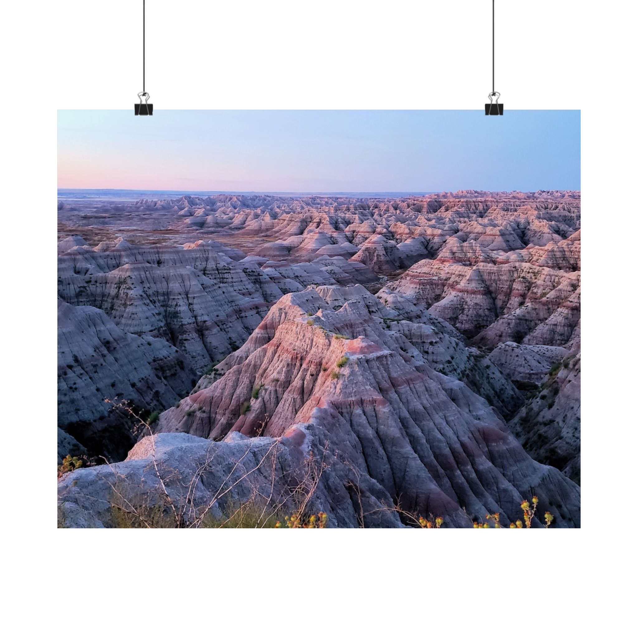 Sunrise Glow over Badlands National Park South Dakota | Fine Art Print of Desert Cliffs, Pastel Sky, and Eroded Buttes | Collectible National Park Wall Décor for Nature and Landscape Enthusiasts