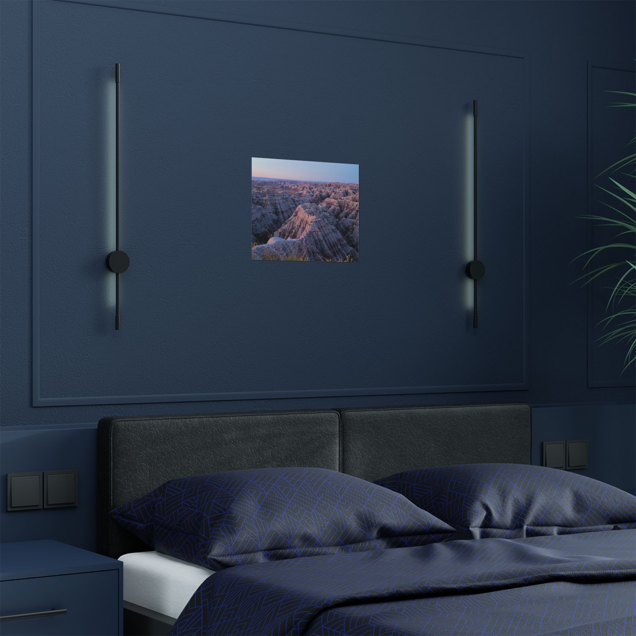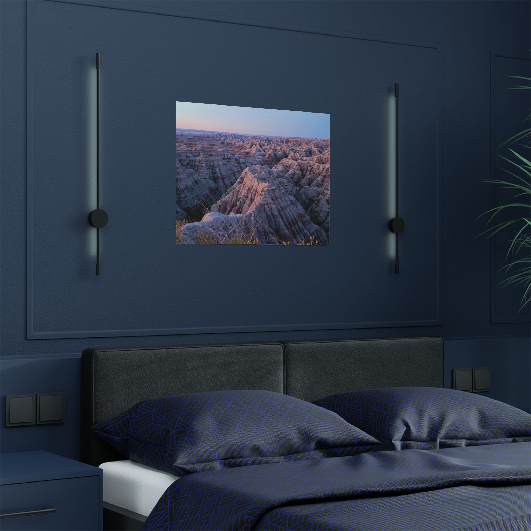 This fine art photograph highlights the delicate beauty of sunrise as it washes over the jagged cliffs and rolling formations of Badlands National Park, South Dakota. The warm pastels of dawn—shades of pink, coral, and violet—blend across the horizon, casting a gentle light over the rugged pinnacles. A striking tribute to one of America’s most iconic landscapes, this piece captures the quiet power and serene majesty of the Badlands in the early morning hours.