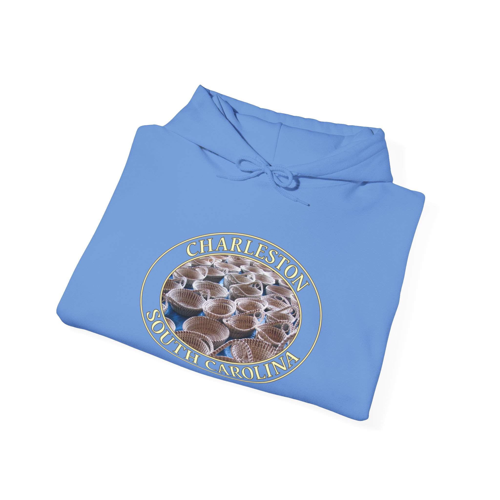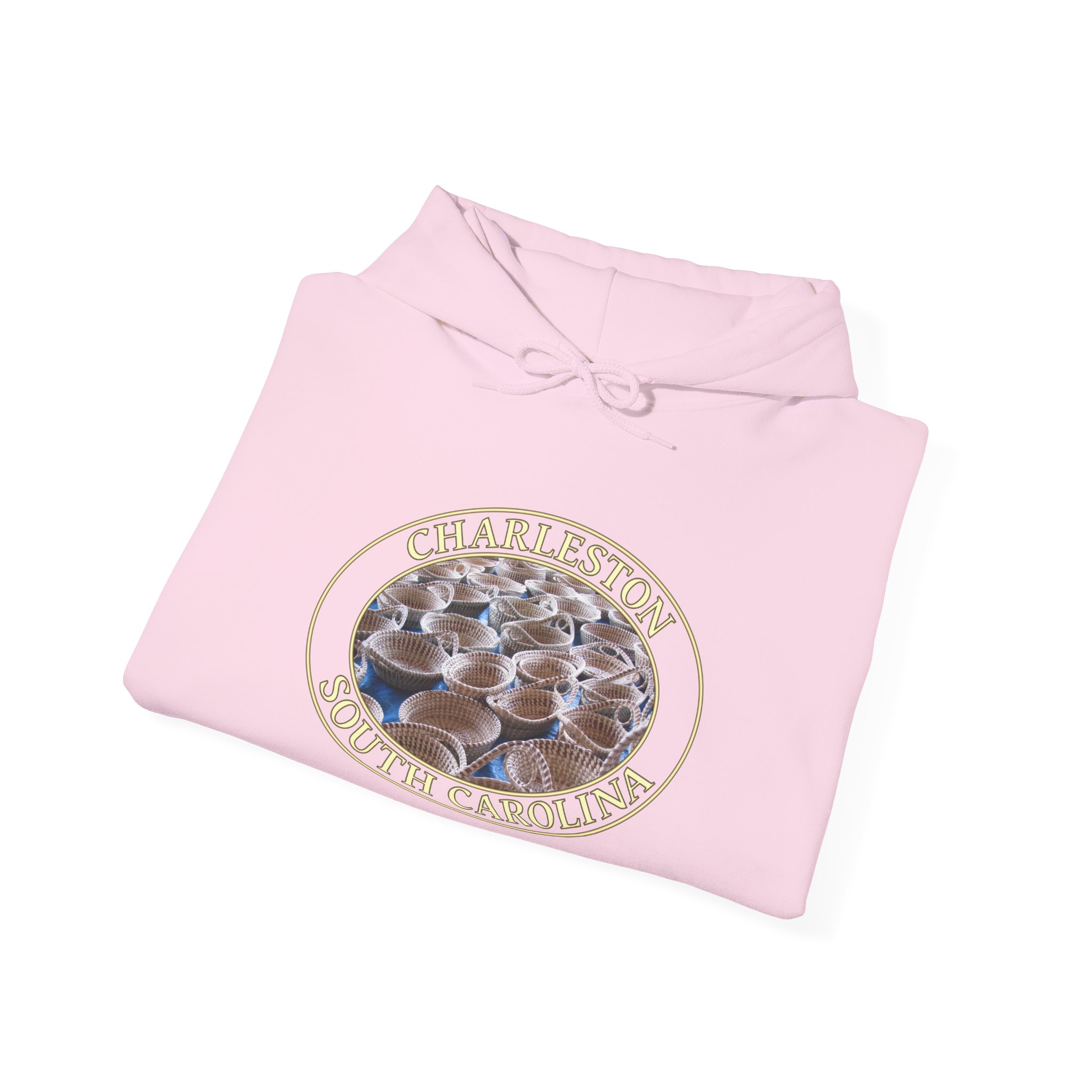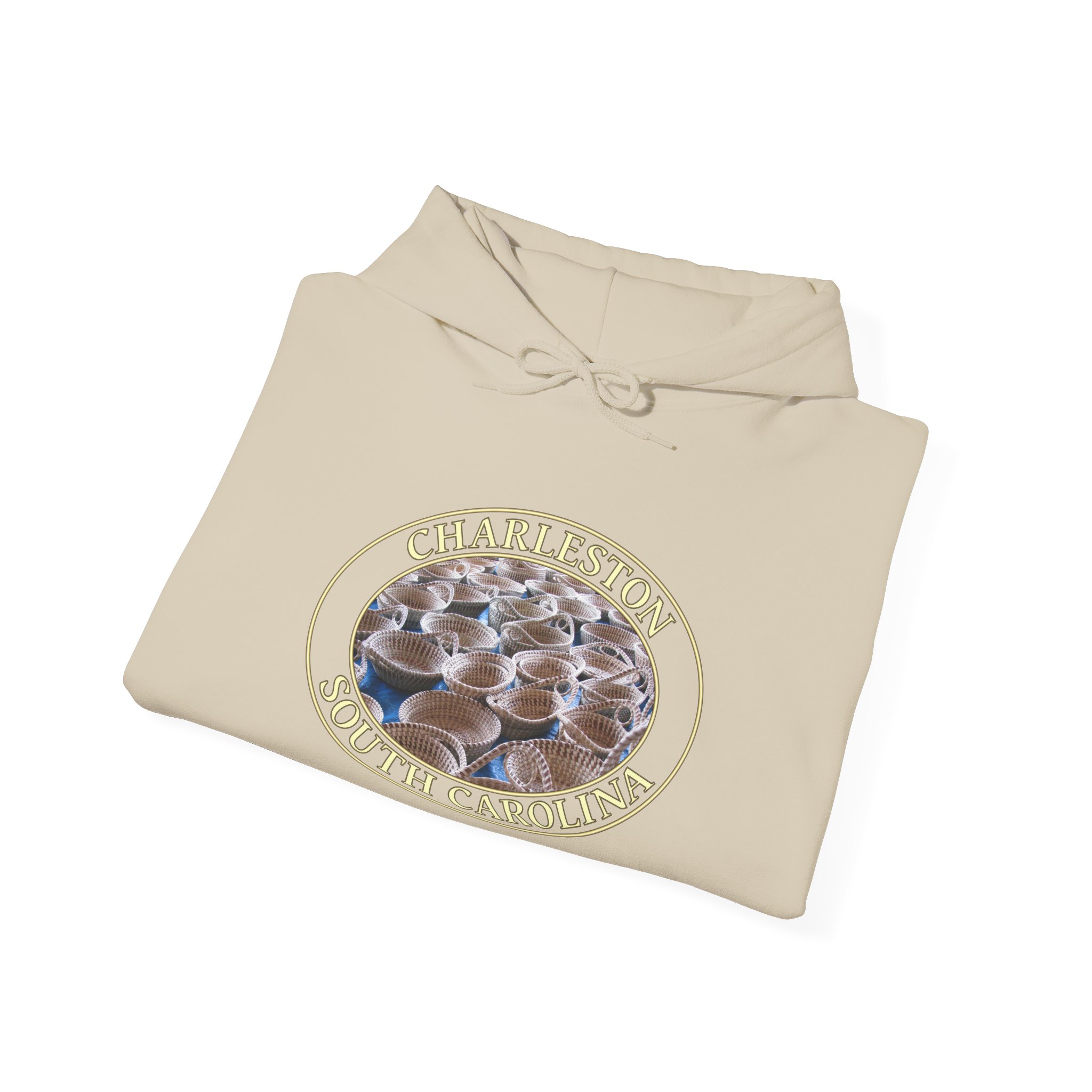 This pullover hoodie features a design inspired by the timeless sweetgrass baskets found at the market in Charleston, South Carolina. The scene captures the warmth and artistry of Lowcountry tradition, blending natural textures and gentle light for a cozy, inviting mood that celebrates the region’s unique heritage and scenic charm.