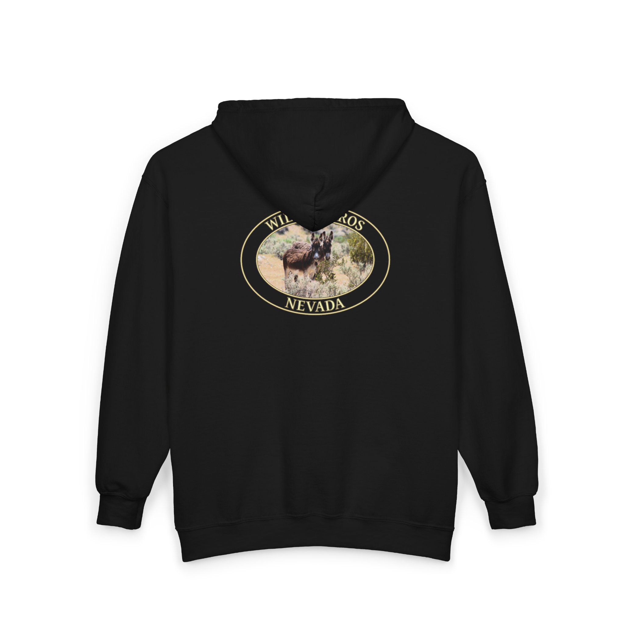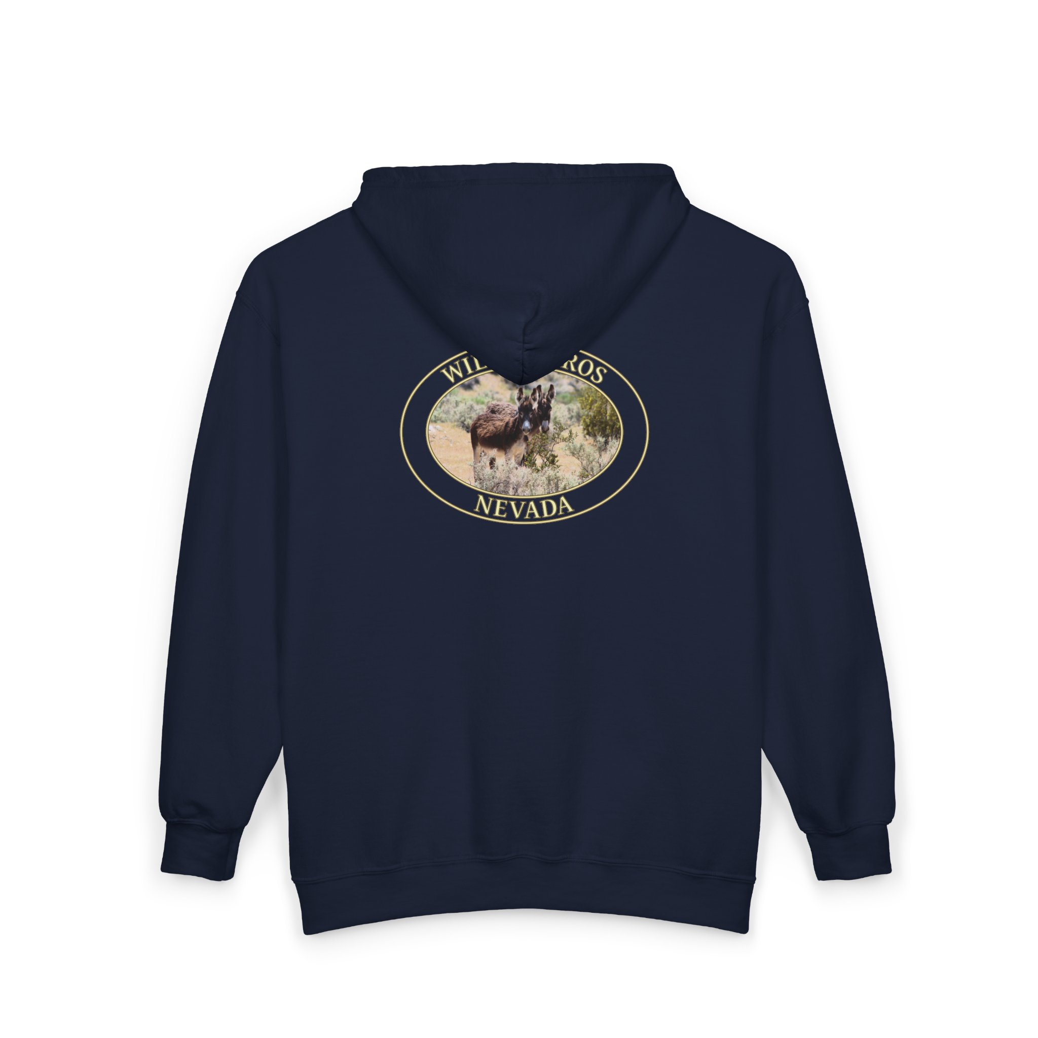 Captured in the quiet expanse of western Nevada, this original photograph features a wild donkey couple standing together against the rugged landscape. The gentle light and open sky evoke a sense of freedom and connection with nature, making this hoodie a perfect tribute to the untamed beauty of the American West and its unique wildlife.
