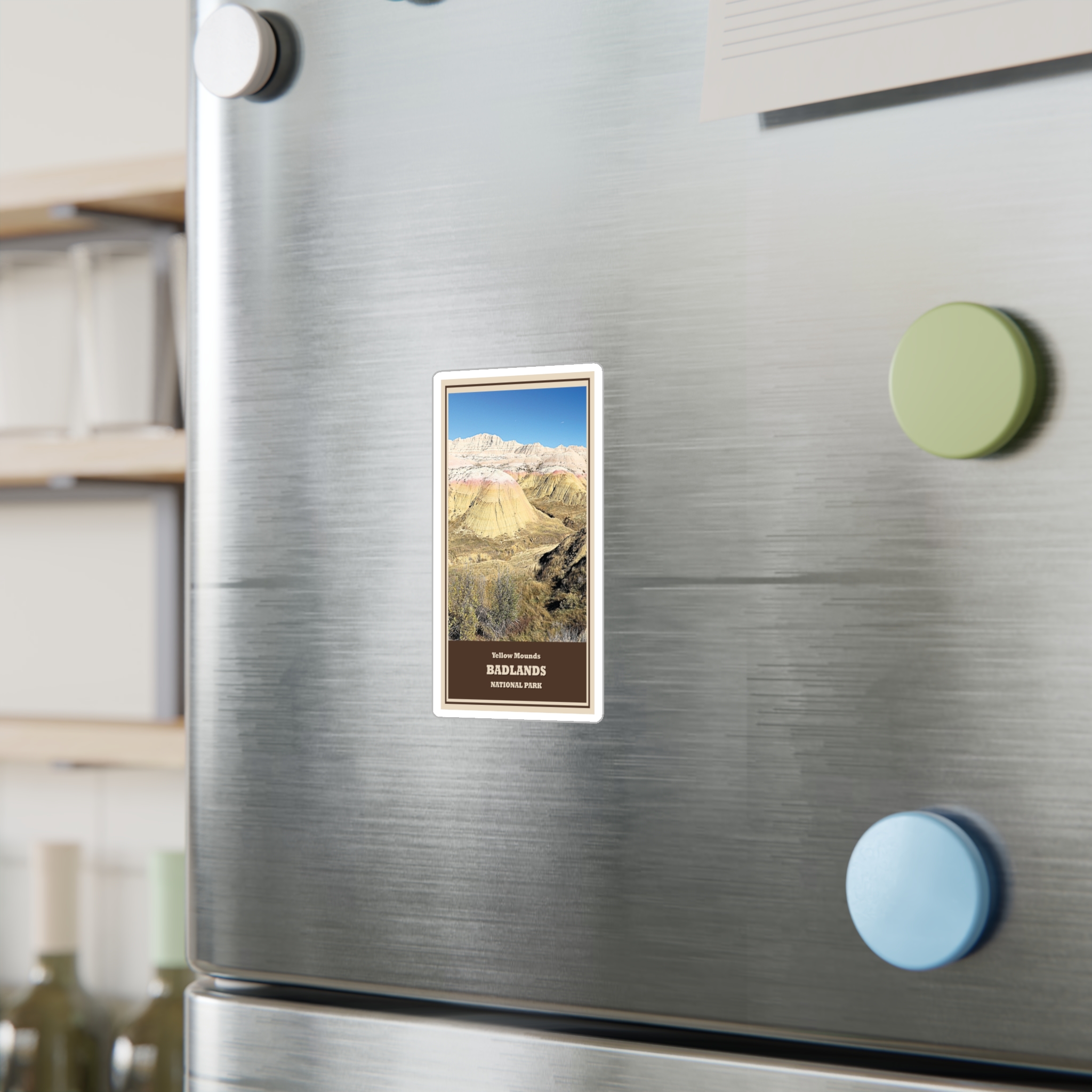 Celebrate one of the most striking and colorful landscapes in the American West with this Yellow Mounds – Badlands National Park Vinyl Sticker. Featuring the naturally vibrant yellow, pink, and lavender layers of the Badlands’ iconic Yellow Mounds, this sticker brings the ancient geology and raw beauty of South Dakota’s rugged prairie wilderness to life. Perfect for national park lovers, road-trippers, RV travelers, hikers, and collectors of park souvenirs, this sticker captures the magic of the Badlands in a design that’s both nostalgic and timeless.